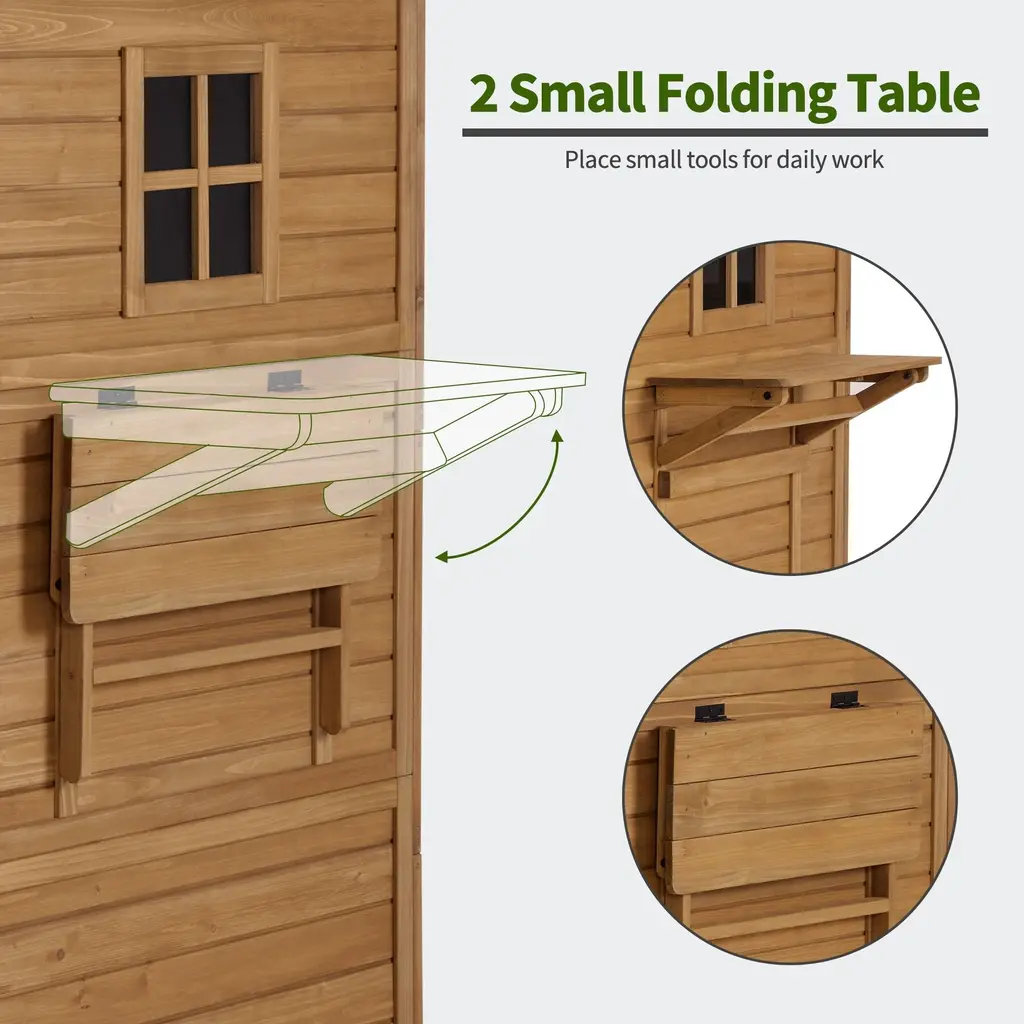 Mcombo Large Outdoor Storage Shed With Lockable Door And 6 Shelves And Double Foldable Tables, 2645 - Natural - Natural