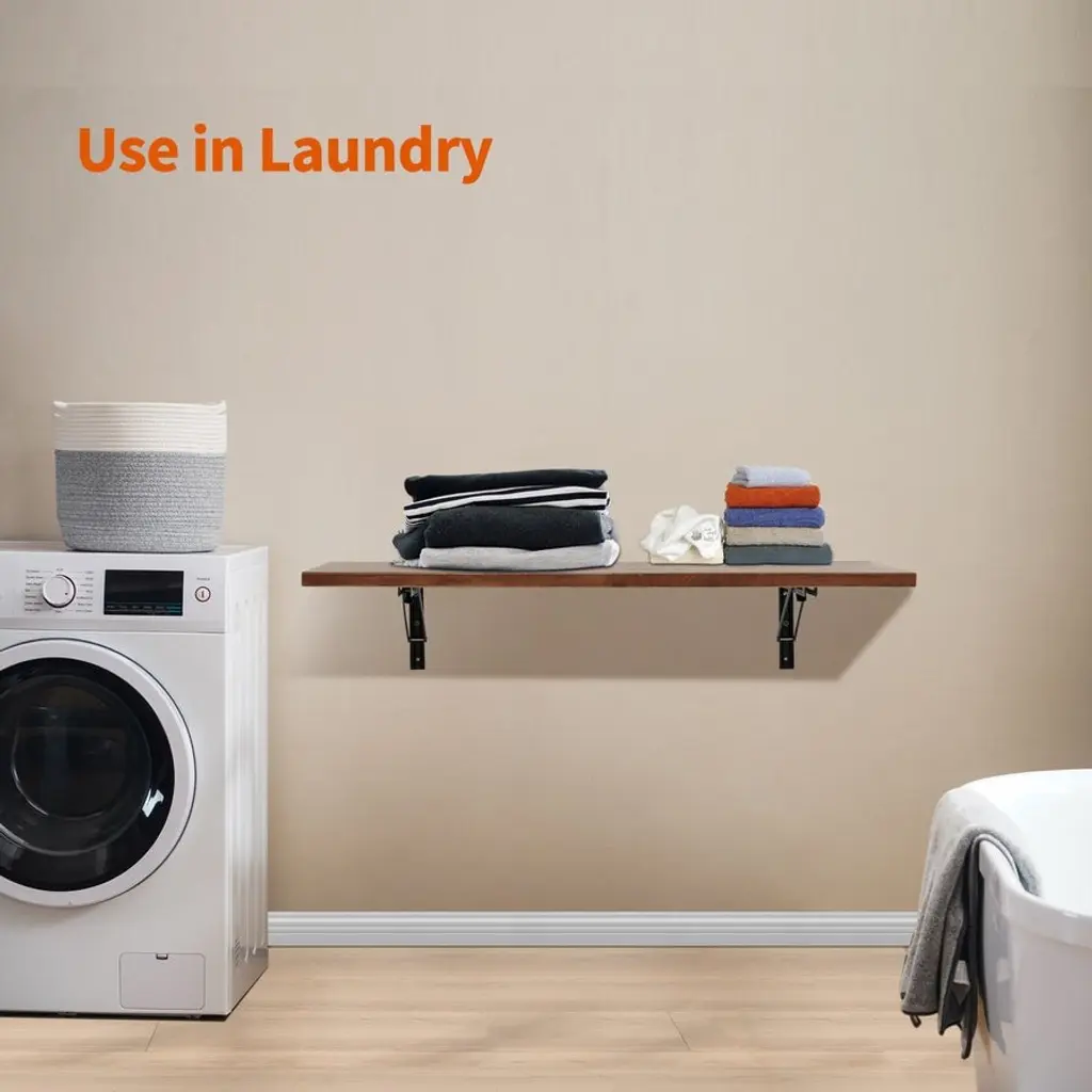 Mcombo Wall Mounted Workbench With Solid Wooden Tabletop For Garage, Laundry, Folding Worktable For Home, Office, Washroom, Ad90 - Brown
