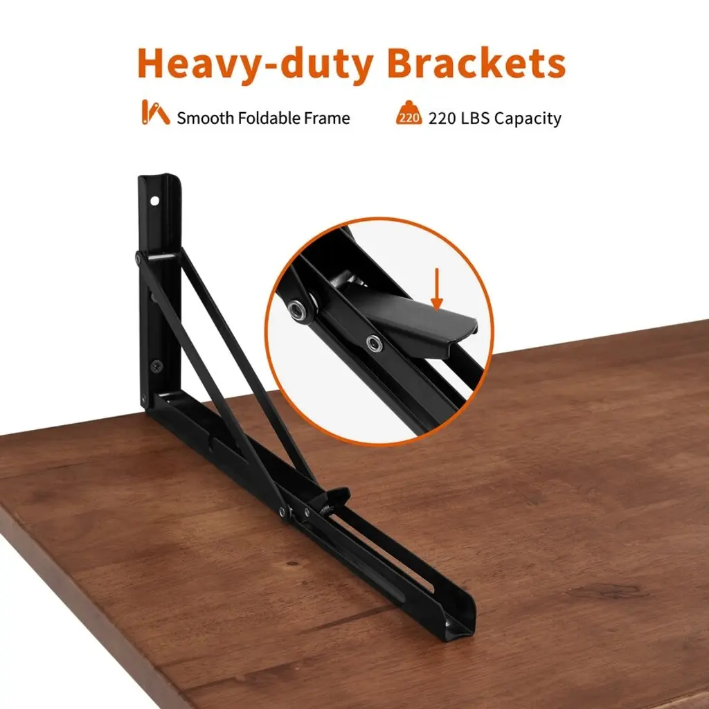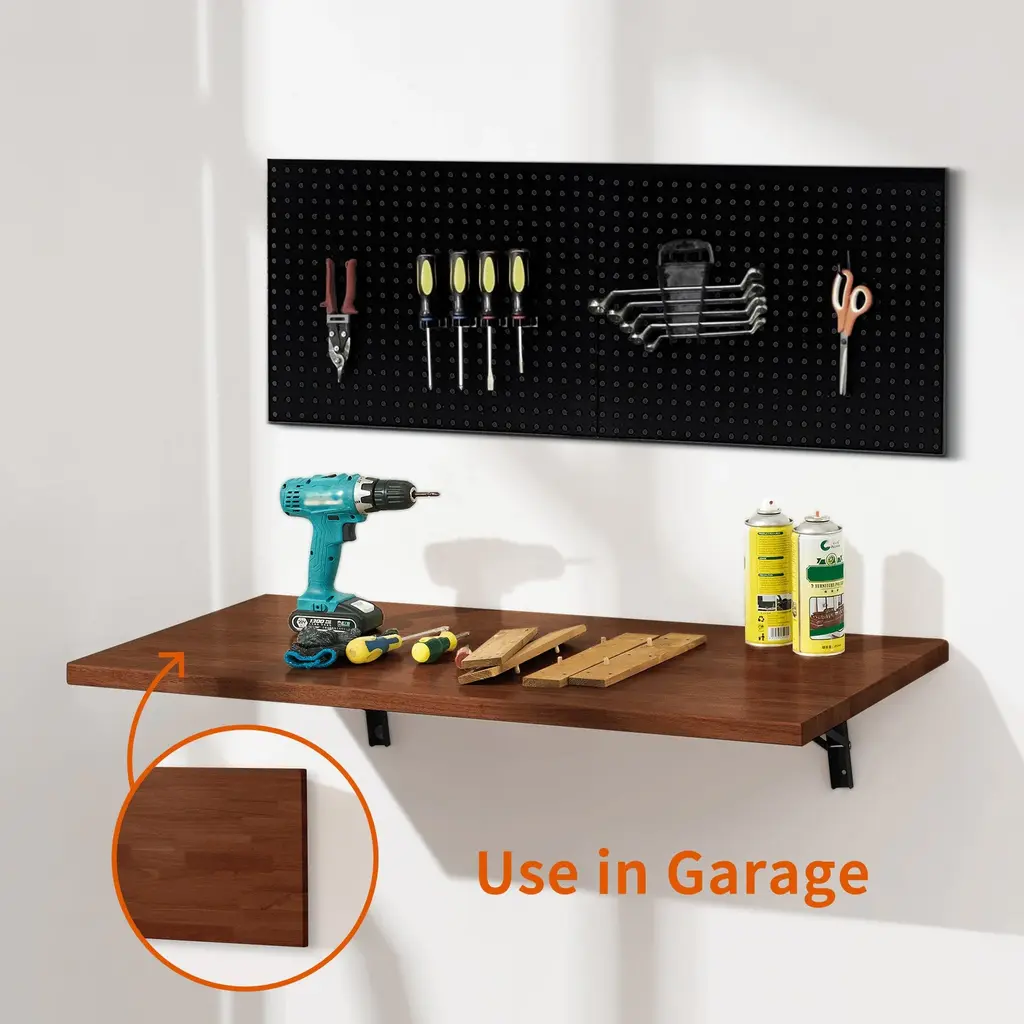 Key Features:Are you looking for a wall-mounted workbench to utilize your room?If yes, why not check out Mcombo Folding Workbench?1” wooden worktop with a polished surface gives you a satisfied and clean work environment.Industrial brackets provide 220 lbs weight capacity.When you don’t use this garage workbench, just need a light click. Then the wall-mounted worktable will be folded and the room will be saved. Item Specifications:Tabletop Material: Acacia woodDesktop Thickness: 1"Frame Material: SteelWorkbench Overall Size: 19.8” x 39.3”Workbench Weight Capacity: 220 lbsPackage Included:1 x Workbench1 x Assembly Instruction1 x Hardware Pack1-Year Limited WarrantyCustom-made ServiceDo you have your own specific wishes for this workbench's size, color, style, or anything else?Don’t hesitate. We are pleased to provide you with personalized service and product that meets your requirements and is manufactured according to your specifications.