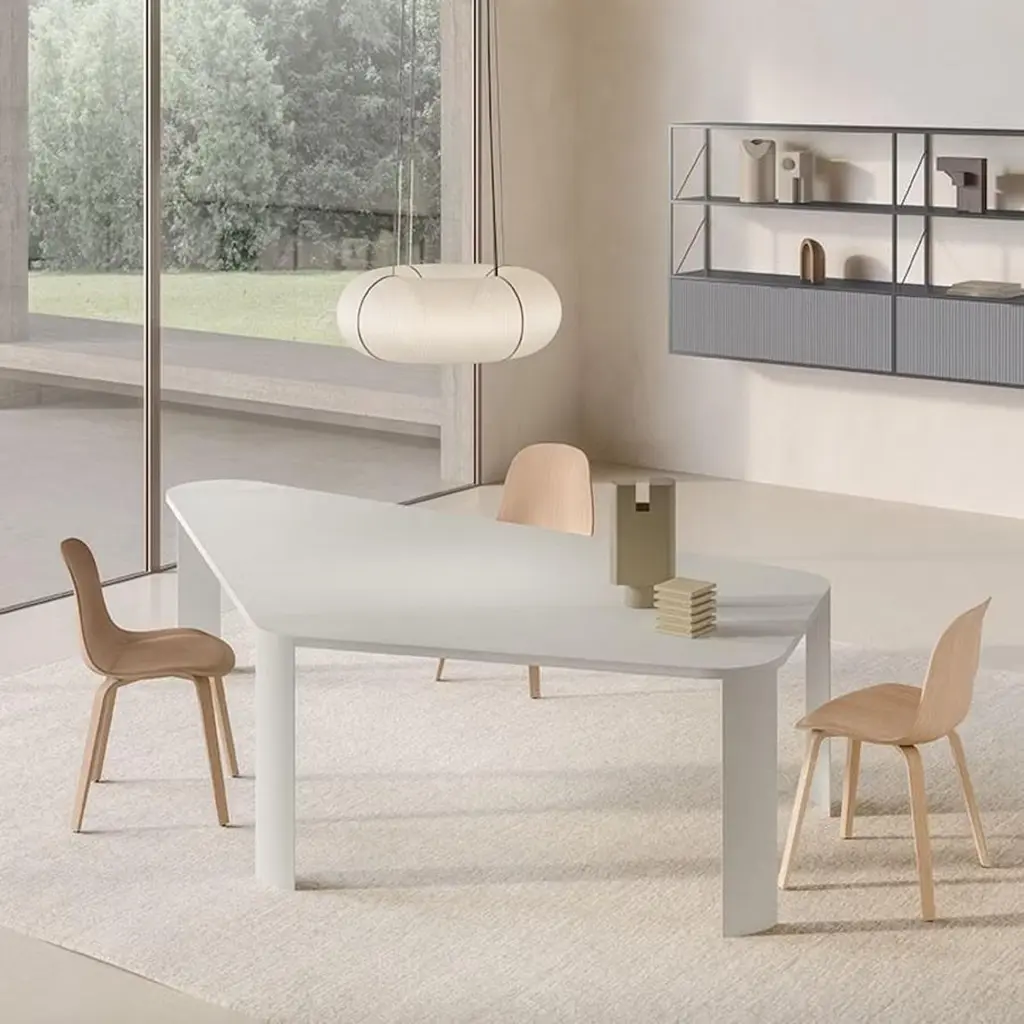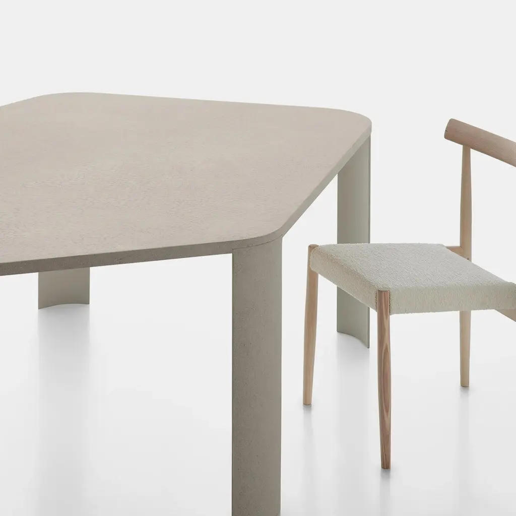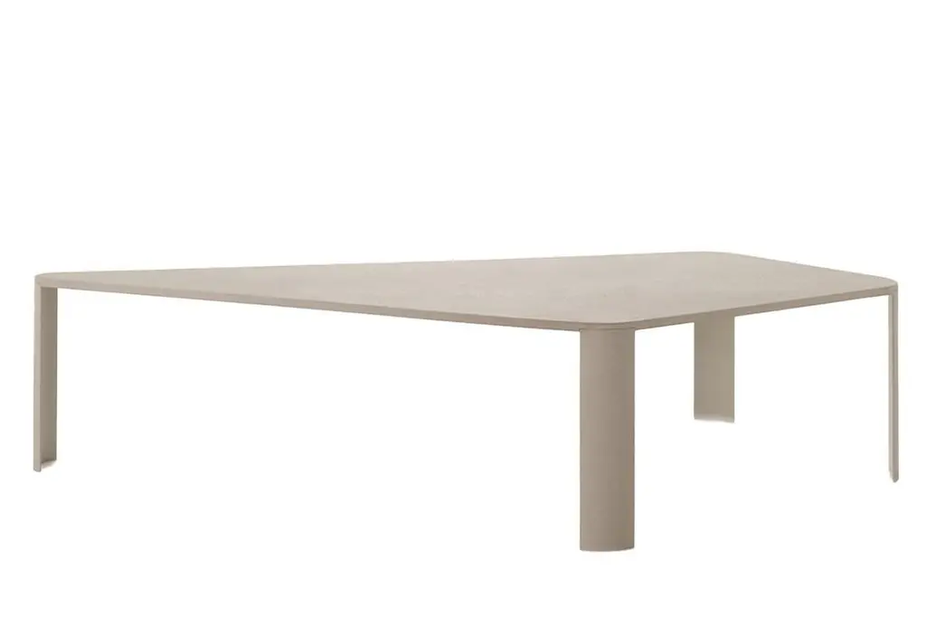 The tables in the Bonnet family interpret the theme of soft, rational forms with architectural elan, introducing a touch of femininity into the MDF Italia collection that invites unprecedented social experiences.The legs, which resemble smoothed blades, rise up and embrace the table top with which they create a dynamic tension. The simple but bold asymmetrical and unusual shapes of the top have a strong personality that softens formal rigour with what the designer, Marialaura Irvine, calls a “radical whisper”.When combined, these tables can create unexpected compositions. The result of experiments with materials and colours, the sophisticated single-material finishes made with Coccioperla (a mixture of mortar, aggregates and crushed mother-of-pearl) give the surfaces a tactile, brilliant and vivid aura.STRUCTUREThe top is made of melamine supported by a metal frame that allows the top to be joined to the bases, both finished with the new Coccioperla finish, a material mix obtained from a mixture of mortar, aggregates and crushed mother-of-pearl. The spatula application process is entirely manual over the entire table surface and produces a unique texture that makes each product distinctive both to the eye and to the touch.BASESThe bases are made of curved metal and follow the angles of the top. Coccioperla finish in the same colour as the top.DIMENSIONSThe tables are available in 10 dimensions, of which 5 are shaped, 3 rectangular and 2 square. H73 cm.