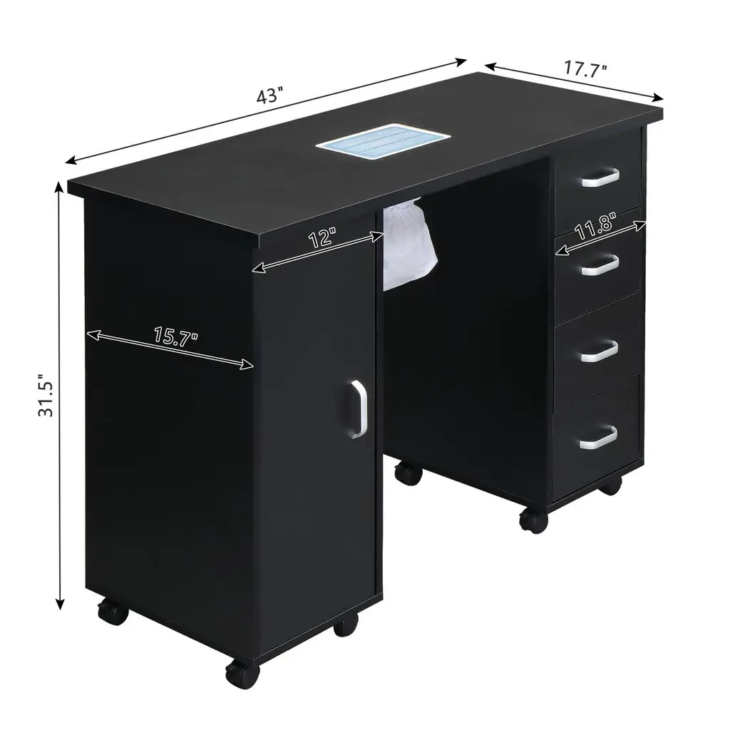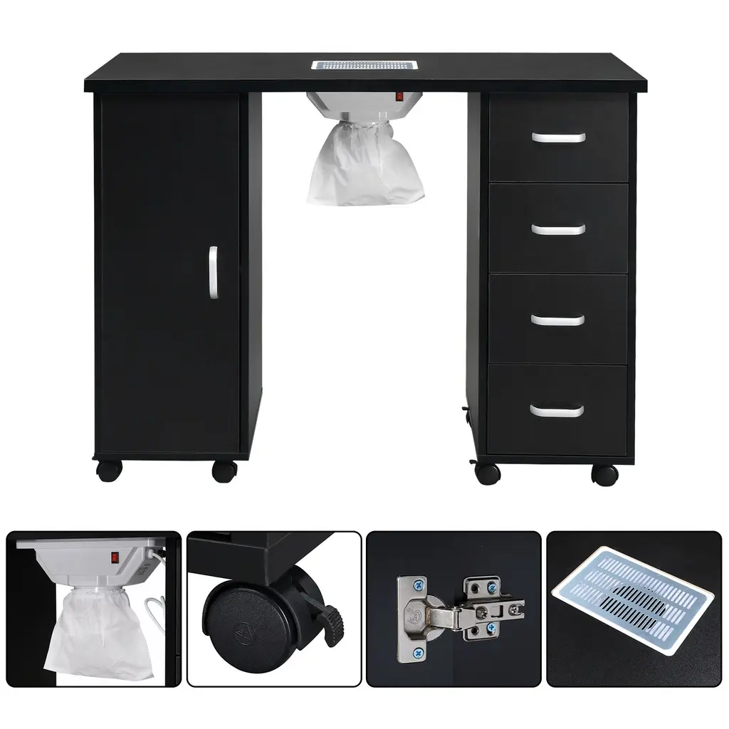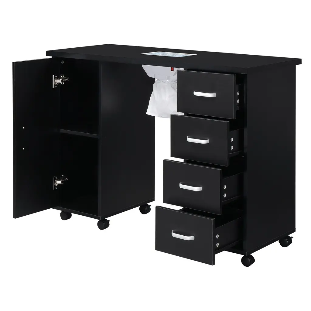 Mdf Single Door 4 Drawers With Fan White Nail Table Black - Black