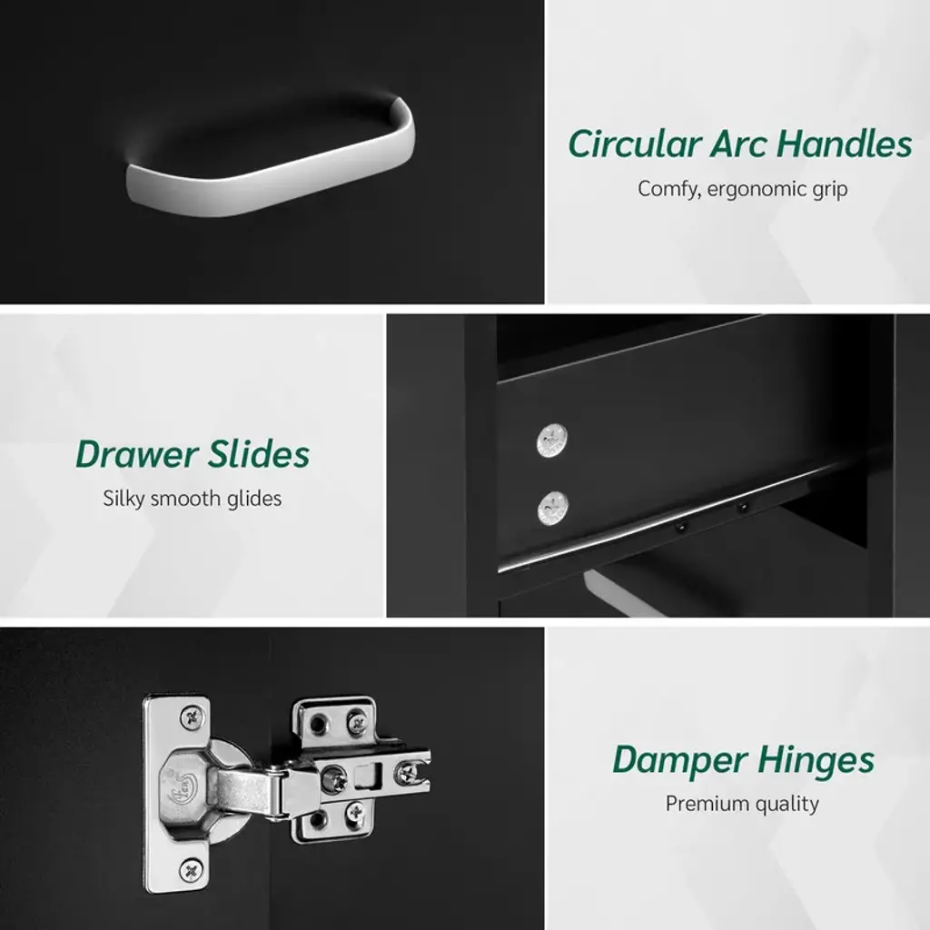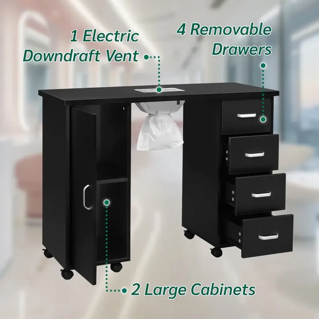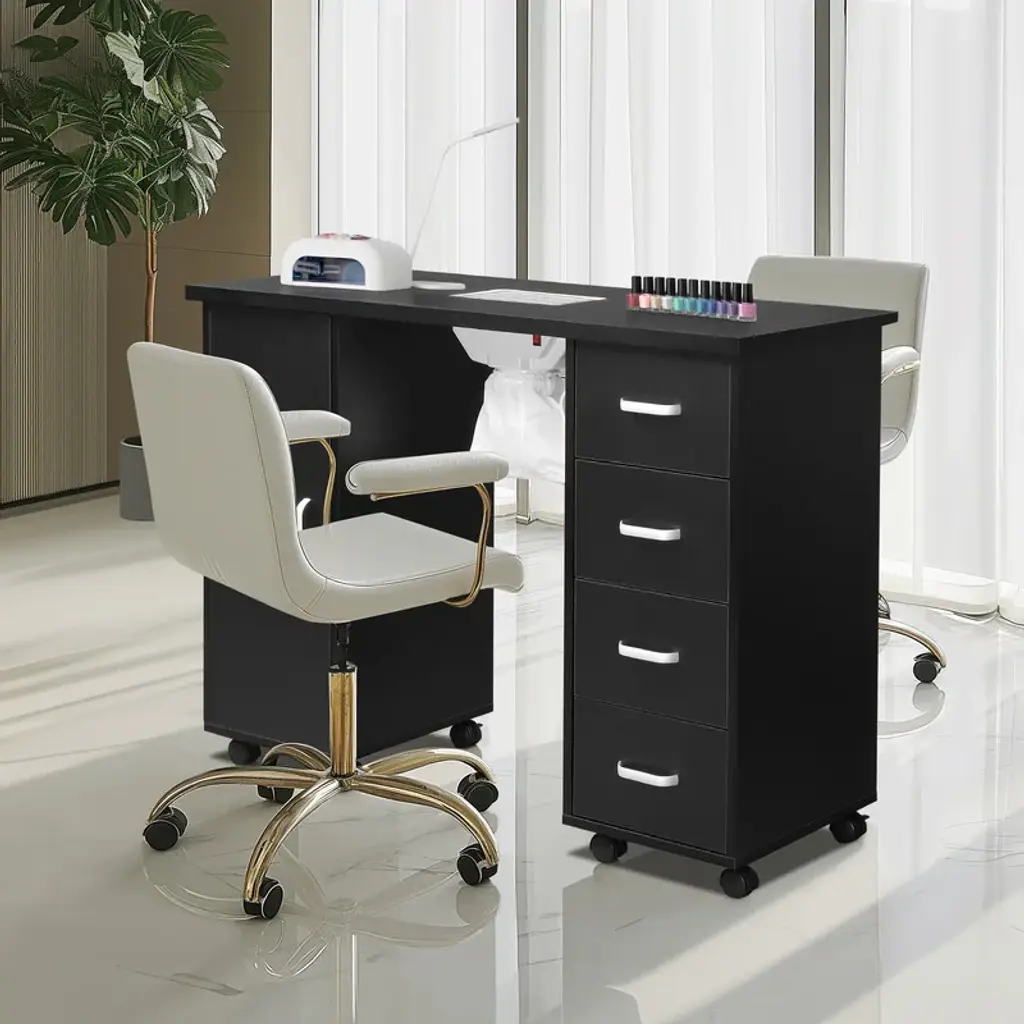 Mdf Single Door 4 Drawers With Fan White Nail Table Black - Black