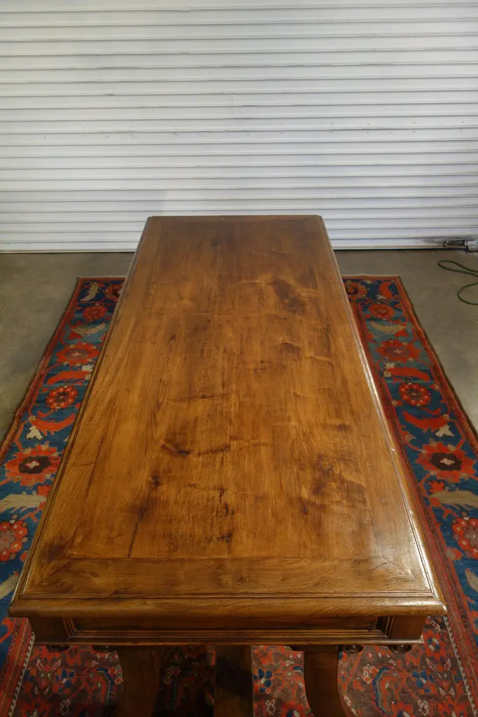 Our "Amalfi" 3-drawer Mediterranean-style writing desk; simple sophisticated charm presented in fine Italian handcraft. Elegant yet casual. A stylized refectory table featured in aged premium Italian solid walnut and finished in traditional shellac. Available in low sheen. Forged iron elements. Equally suitable for a finely curated home or the modern executive office.AMALFI premium Old Walnut 3-drawer Writing Desk Table as shown:Measures: 72" L x 30" W x 30.7" H (25" H leg space under the drawer apron with this top surface height)Optional finishes include:- Natural blonde shellac- Classic shellac- Espresso Dark stain shellac - Moro blackened shellacGloss, satin & distressed painted finishes also available to orderAlso available in Old Chestnut, Poplar, or Walnut with smooth or brushed grain finish.Our Mediterranean-style collection of Tuscan, Classic, rustic, & farmhouse tables are adapted from Italian Renaissance designs of the 15th to 19th Centuries, artfully reproduced with aged Italian hardwoods and tooled hardware. Made to order to your custom needs in size, color & patina. You may choose from our wide range of custom handcraft options and request a custom quote. Your writing table will be handmade to order in Italy to specification and shipped on our next available container to Encinitas, California. Expedited freight worldwide optional.