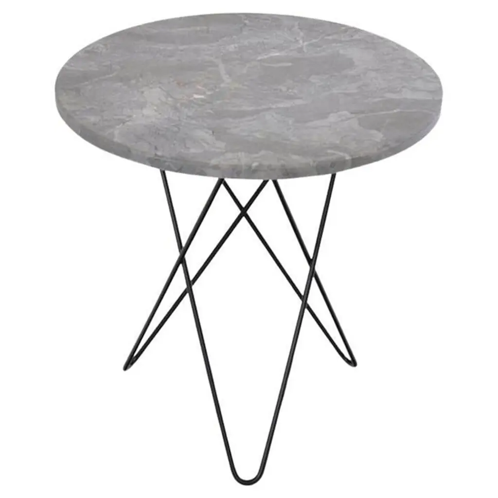 Medium All For One Grey Marble Table by Ox DenmarqDimensions: D 50 x H 60 cmMaterials: Steel, Grey MarbleAlso Available: Different marble options available,OX DENMARQ is a Danish design brand aspiring to make beautiful handmade furniture, accessories and lighting in natural high-quality materials in fair prices. " When we set out back in 2003, we were primarily working with vegetable-tanned saddle leather thus the name OX was a tribute to our unique leather and the animal providing it.The other half of our name, DENMARQ, is chosen to emphasize that we are a Danish design brand based on the Danish design tradition and that most of our furniture is produced in Denmark. However, DENMARQ not only refers to our home country, but also to the co-founder and designer - DENnis MARQuart.Before finishing his design studies at the Copenhagen Design University, Dennis Marquart did a Blacksmith education. This background is extremely useful when developing and designing products."OX DENMARQ handmade products will only get more beautiful as time passes and natural patina sets in.Many OX products are shaped around marble or vegetable-tanned saddle leather. Stone and leather are materials that will, and should, get marks over time. But they will also age with a very special beauty. When you learn to appreciate the beauty of maturity and of time passing, you have learned to appreciate patina the way it should be appreciated.