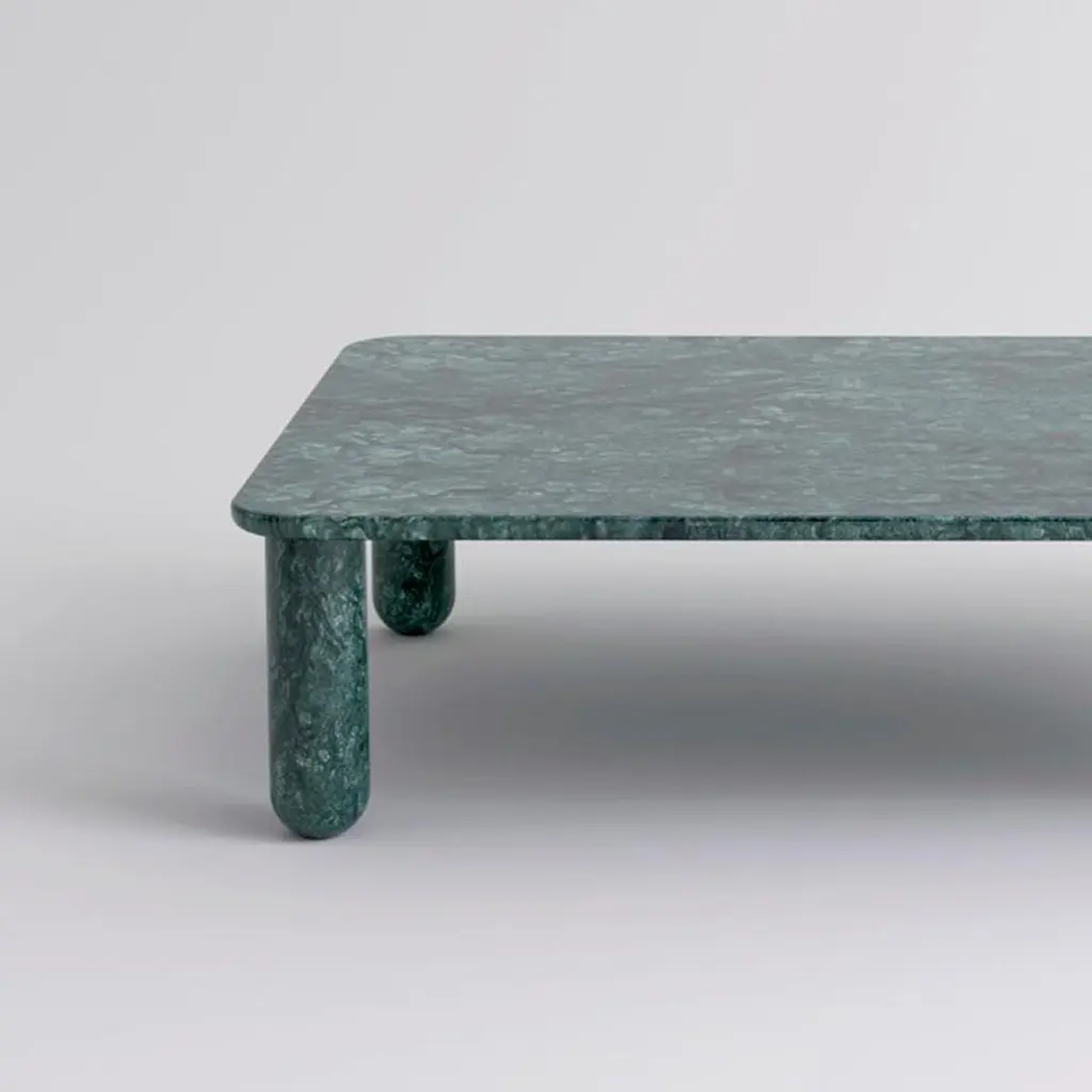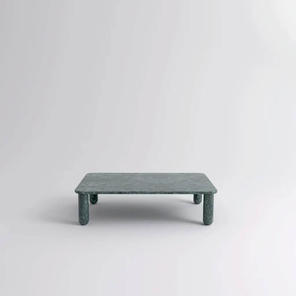 Medium Green Marble "Sunday" coffee table, Jean-Baptiste SouletieDimensions: 100 W x 150 D x 35 H cmMaterials: Indian Green marble.Available in 4 sizes: D150, W50 / D200, W50 / D150, W100 / D200, W100.Available in 5 top materials: walnut / black stained wood / Pele de Tigre marble / Black Marquina marble / Indian green marble.Available in 3 leg materials: Pele de Tigre marble / Black Marquina marble / Indian green marble.Sunday is a family of coffee tables and low consoles with a simple and clean design vocabulary. The combination of heavy marble legs with the thin solid wood or marble top creates an interesting contrast while the rounded edges and generous proportions provide a comforting feeling.Jean-Baptiste Souletie is the Co-founder of the furniture editor La Chance with Louise Breguet. He studied in India, worked for a merchant bank in London (where he designed their new offices), before working for an investment fund (where he redevised the graphic chart), and in the strategic department of a luxury goods company in Paris. He returned to his first loves, architecture and furniture, when he founded La Chance in 2012.