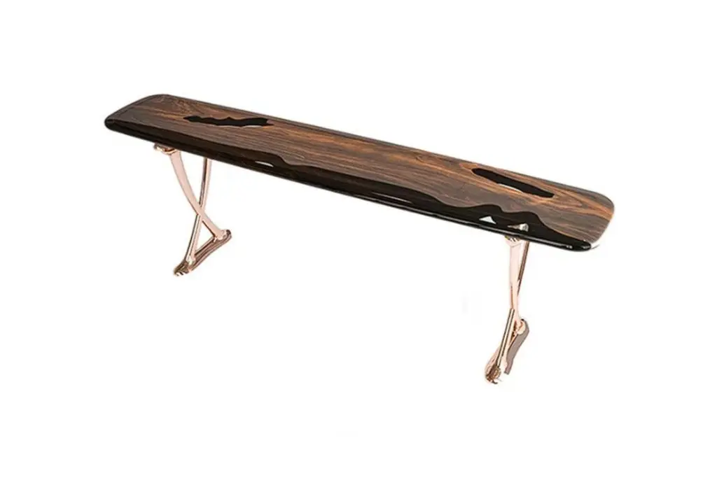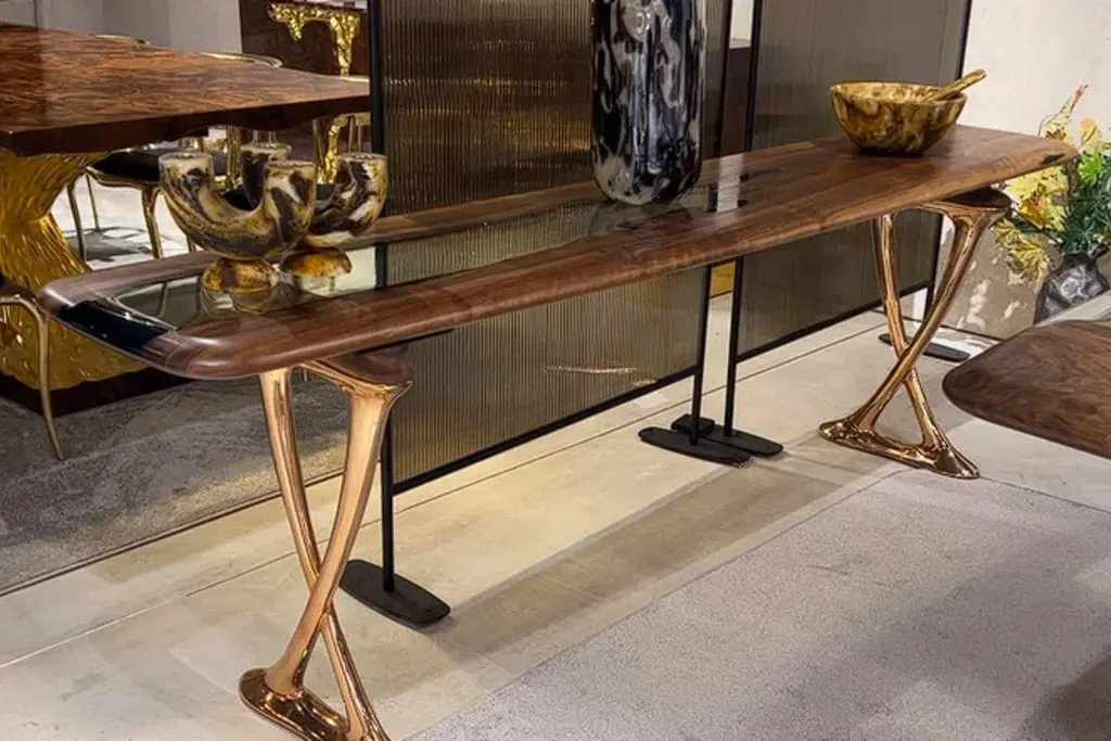 Medma Console Table: Cast Aluminum Walnut Resin Console Table