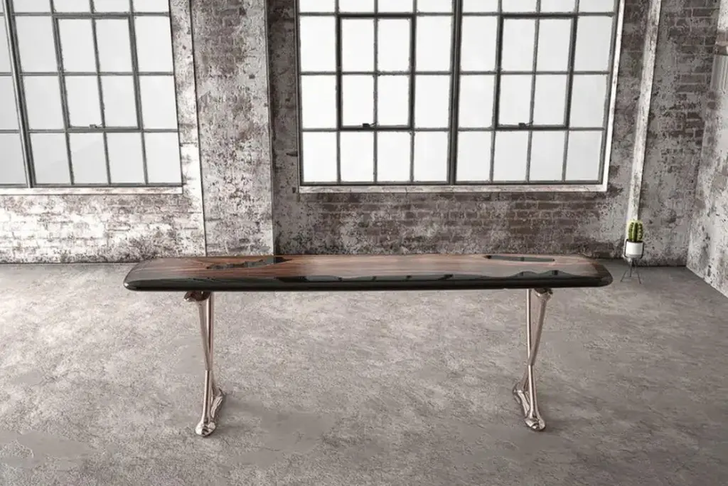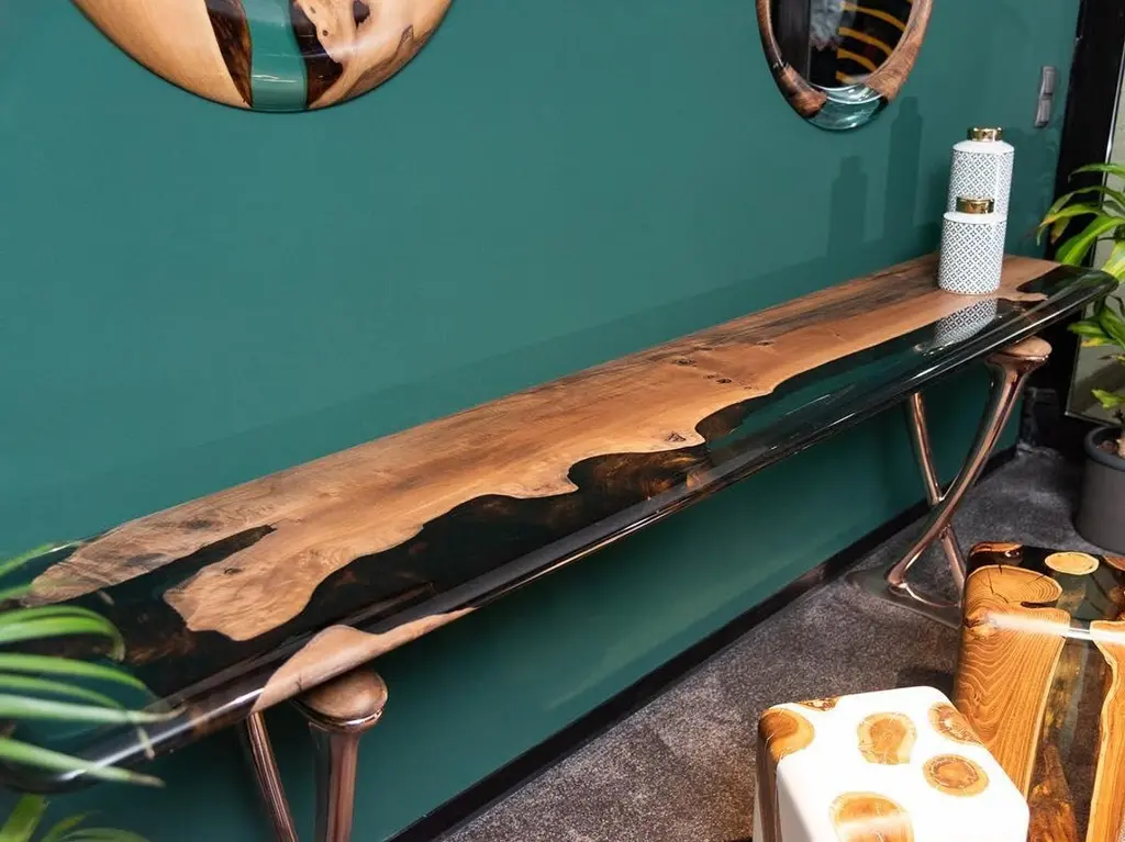 We are proud to introduce the MEDMA console, a stunning piece of furniture crafted from high-quality, rich walnut wood. The console boasts a unique design that artfully combines the natural beauty of wood with the crystal-clear resilience of epoxy resin. The addition of sleek aluminum legs adds a modern touch to the piece, making it a perfect addition to any space.The MEDMA console is not just a functional piece of furniture, but a work of art that elevates the style and sophistication of any room. Its exquisite design exudes elegance and is a testament to the superior craftsmanship that is evident in every aspect of the piece.The MEDMA console is an ideal addition to any business or academic setting, bringing a sense of professionalism and expertise to any environment. Its unique blend of natural materials and modern design make it a standout piece that is sure to impress.Introducing the stunning MEDMA console, crafted from rich, high-quality walnut wood. The console features a unique design that combines the beauty of natural wood with crystal clear resin epoxy. The addition of aluminum legs adds a touch of modernity to the piece, making it a perfect addition to any space. The MEDMA console is not just a functional piece of furniture, but a work of art that will elevate the style and sophistication of any room.Our products are customizable and made to order with varying materials and finishes. Please note that the cost may vary depending on the level of customization. Lead time will be confirmed upon inquiry.