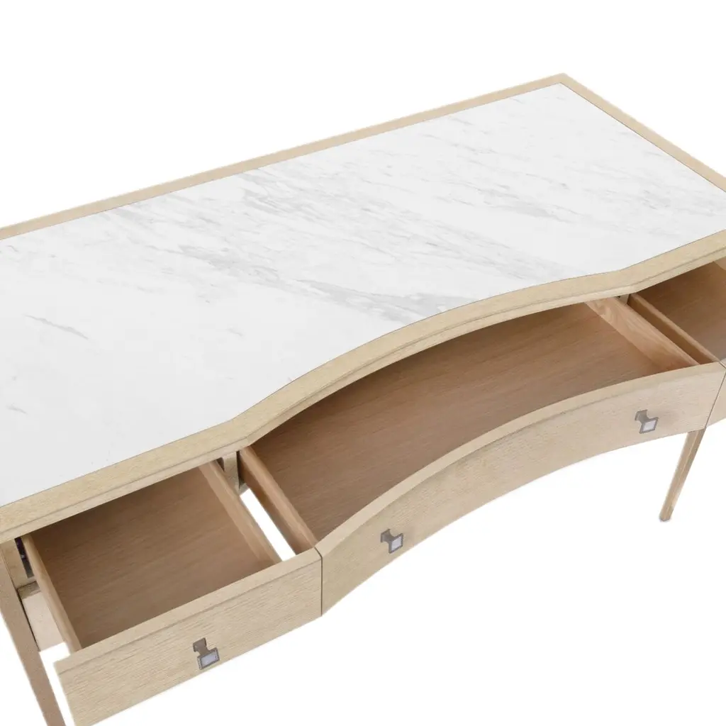 Melange Flourish 5-drawer Marble Top Dressing Table, Natural
