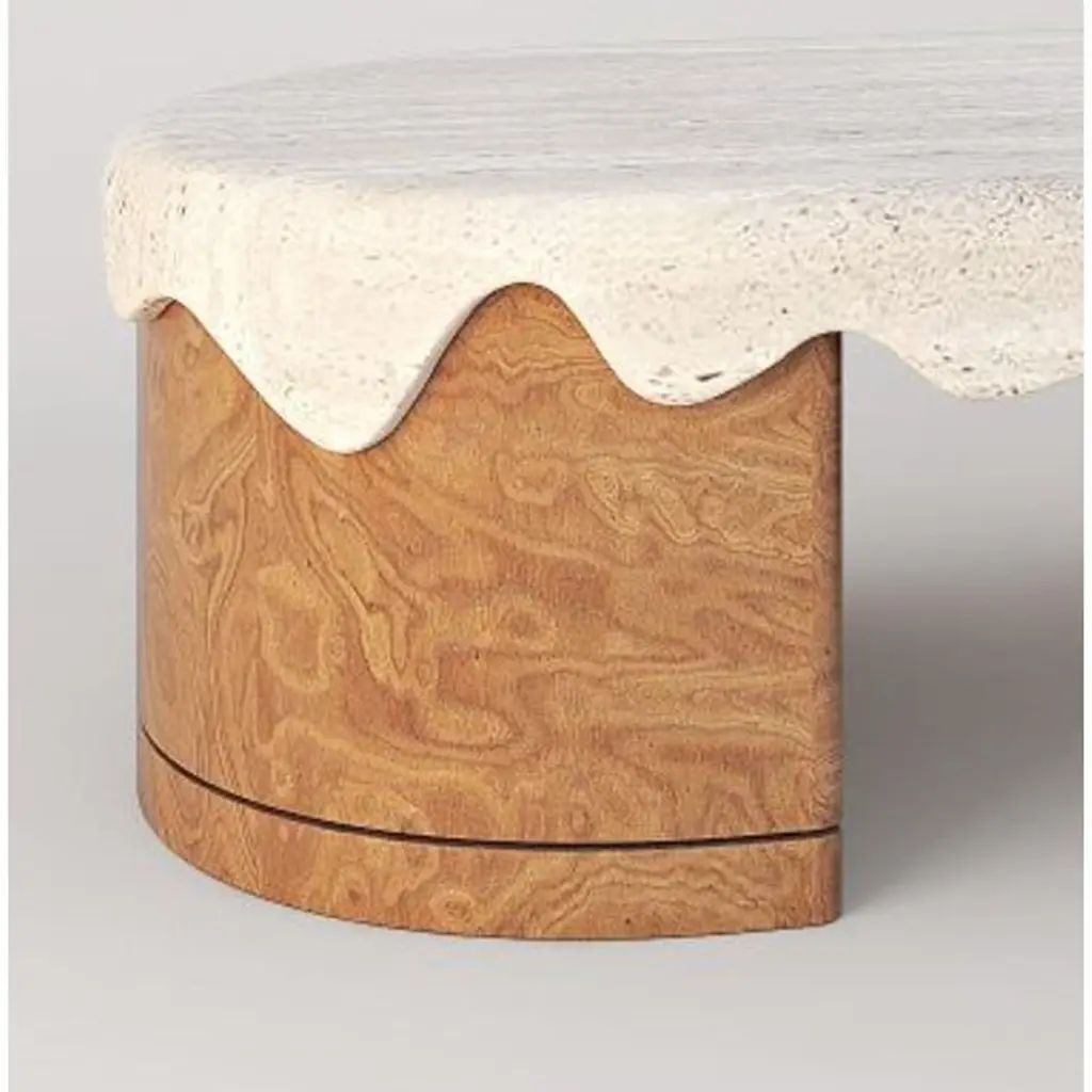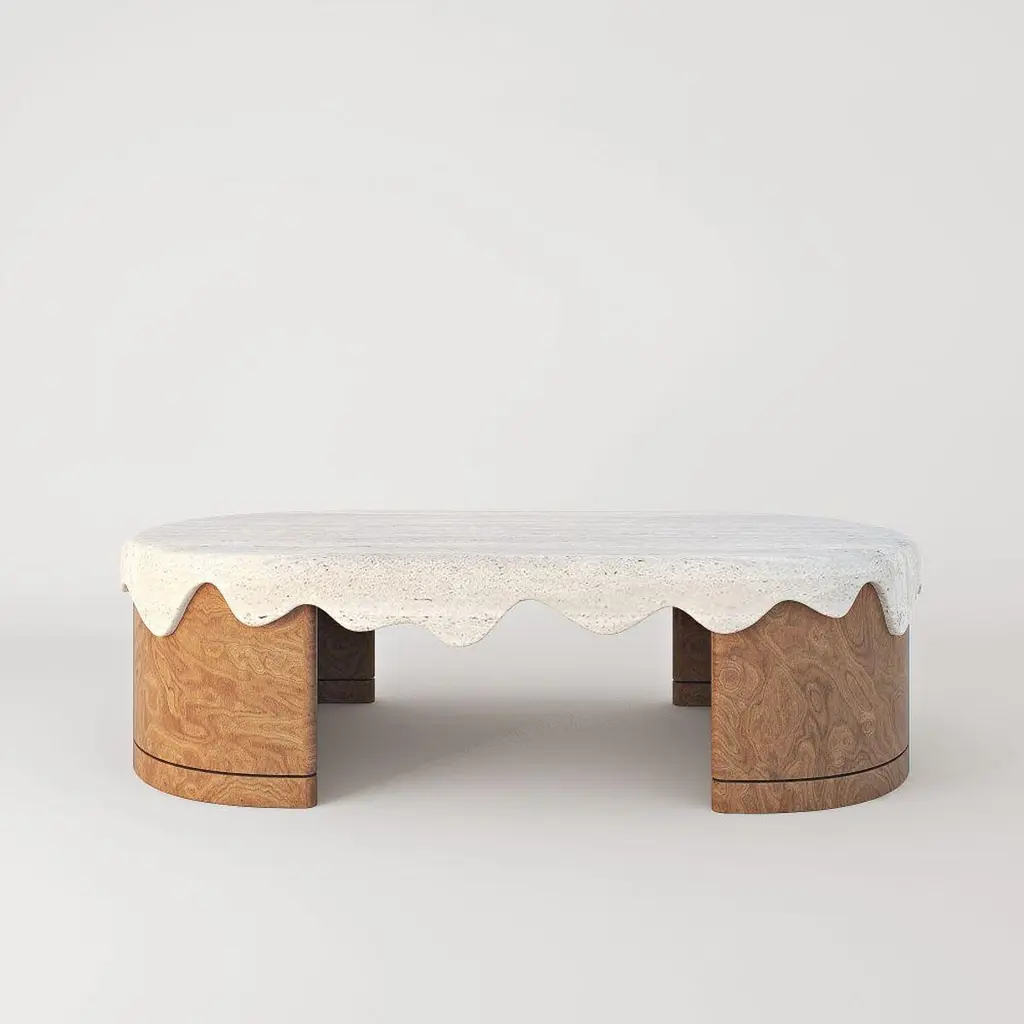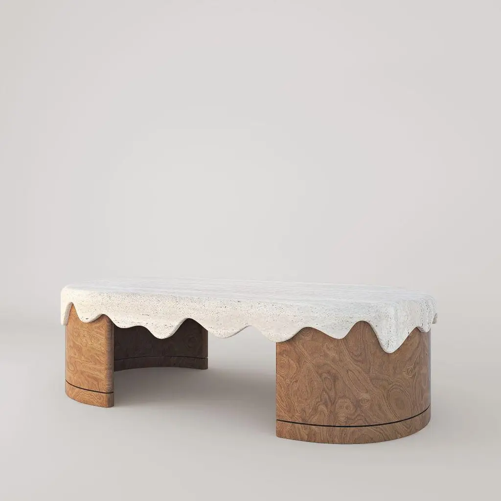 Melt coffee table - walnut burl by Marble BalloonDimensions: W 150 x D 75 x H 42 cmMaterials: Walnut burl, light travertine, white sugarAlso available: California burl, grey vavonaMelt Tables and Consoles are registered design products of Marble Balloon. Melt products are formed by carving block natural stones. 3 different wood veneers and 2 different natural stones are offered as alternatives.Marble balloon is an interior design and high-end furniture brand based in Istanbul. Marble balloon is devoted to create refined and sophisticated designs bringing the premium quality materials and finest craftsmanship together. Adhering to a design philosophy cherishing organic and asymmetrical forms whilst challenging the nature of marbles implying fluidity, incorporating only the extraordinary marbles and natural stones into handcrafted and timeless creations.