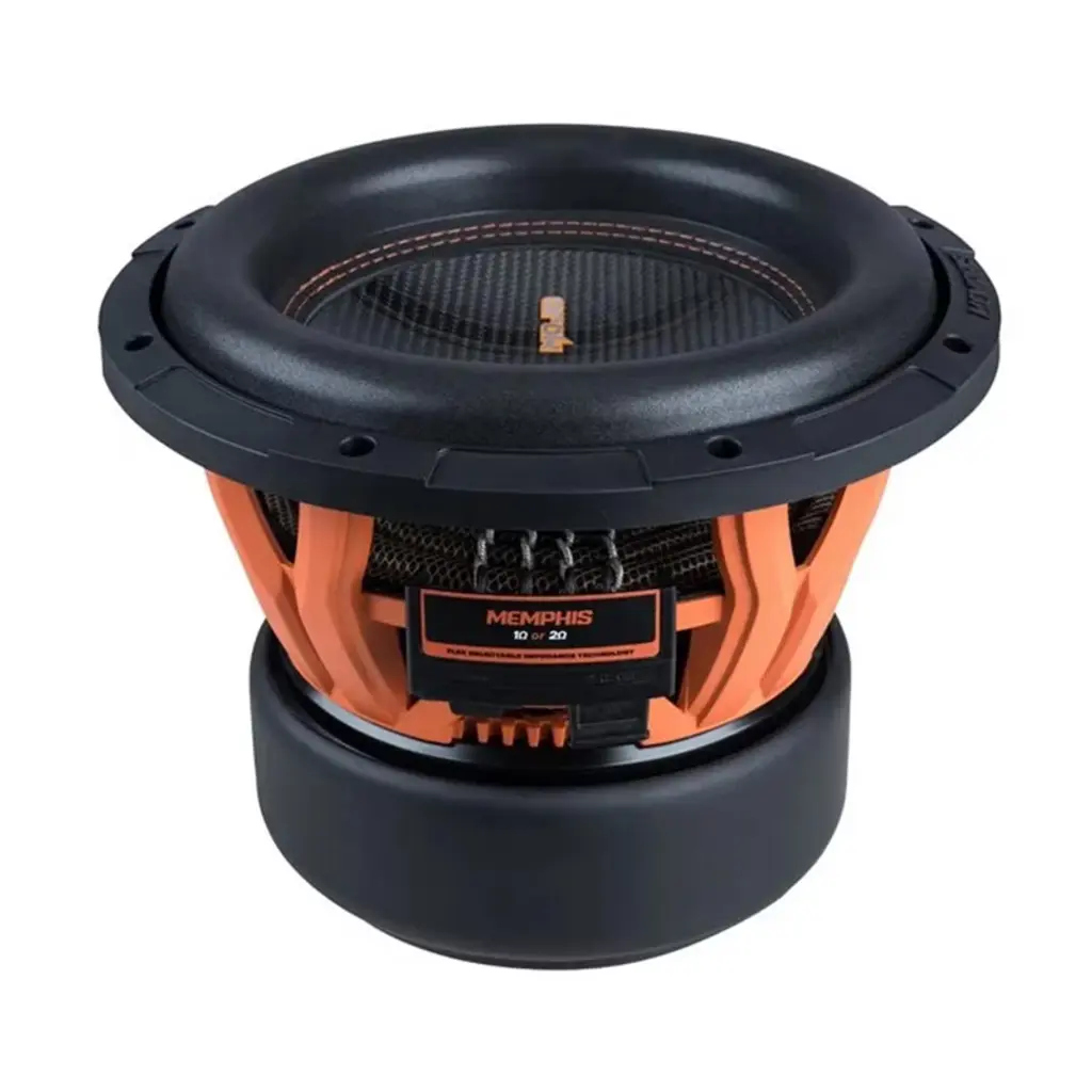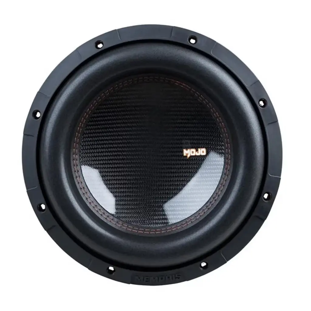 The new MOJO subwoofer is everything fans have been begging for—violent, hard-hitting bass with the unapologetic, old-school style that made MOJO a legend. We brought back the bold Memphis orange basket as a nod to MOJO’s roots, then cranked up the aggression with a massive high-roll surround that pushes excursion to insane levels. The high-gloss carbon fiber cone isn’t just for looks—it’s built to withstand serious pressure, delivering clean, precise output even when you’re pushing limits. With 1500W RMS power handling and our patented FLEX technology, you get brutal performance and on-the-fly impedance control for ultimate versatility. This is MOJO, re-engineered from the ground up to look as good as it sounds. FEATURES Beefy High-Roll Surround: Delivers massive 1″ XMAX and 1.75” of mechanical excursion for extreme cone movement and output. High-Gloss Carbon Fiber Dust Cap: Engineered for maximum rigidity under pressure, with sleek styling that turns heads. Orange Cast Aluminum Basket: A nod to the original MOJO—bold, old-school design meets modern performance. 300oz Magnet Structure: Massive motor design supports up to 1500W RMS power handling for thunderous bass. Patented FLEX Technology: Selectable 1Ω or 2Ω impedance using included jumper plug—customize your load without tools. 4″ Aluminum Triple Voice Coil: High-temp aluminum windings for clean power delivery and superior thermal performance. Vented Cast Aluminum Basket: Keeps the motor cool and the performance consistent, even during extended play. DVVC (Direct Vent Voice Coil Cooling): Actively pulls heat away from the coil to prevent thermal shutdown and distortion. Reinforced Spider Suspension: Heavy-duty spider delivers long-lasting durability and precise cone control SPECIFICATIONS MOJO1212: Selectable Voice Coil 1Ω or 2Ω SIZE (IN): 12 RMS/PEAK POWER: 1500/3000 SENSITIVITY(Db): 83.5 @ 1Ω / 83.7 @ 2Ω MAGNET SIZE (Oz): 300 MOUNTING DEPTH: 8.5 CUT OUT DIAMETER: 11 VOICE COIL: 4