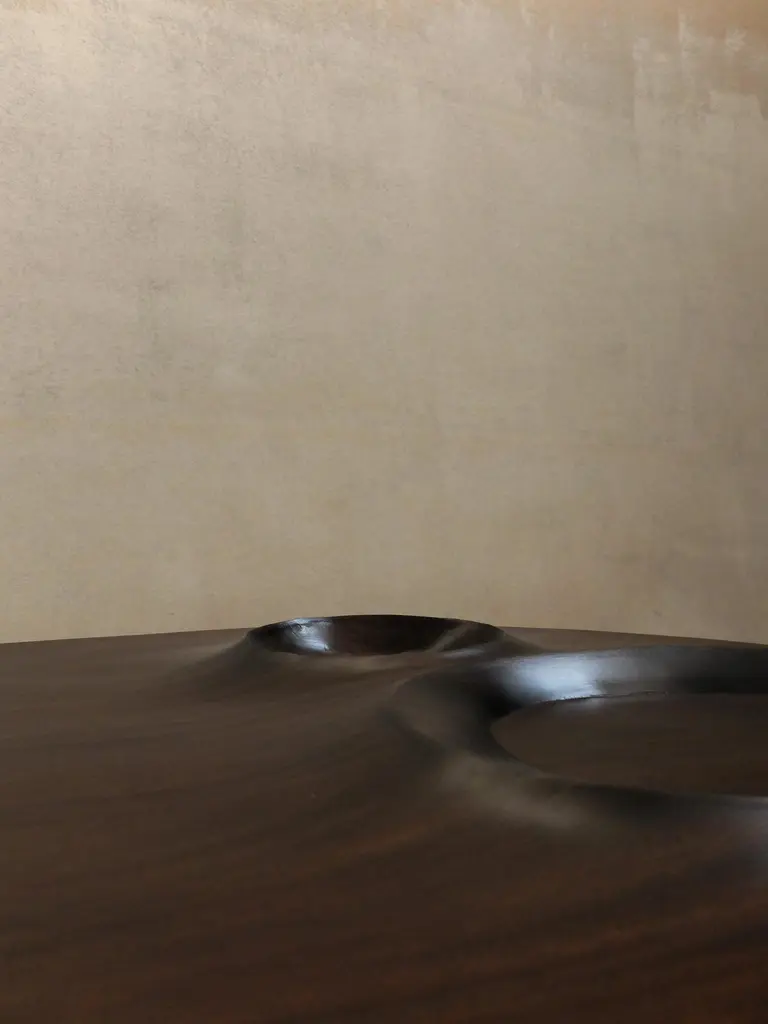 Mer et Cratère Table by AltinDesigned and developed by Yasmine Sfar and Mehdi Kebaier.Dimensions: D 130 x W 90 x H 35 cmMaterials: Wood.Hand-carved wooden table.OrbitA journey to a new dream world that we could call «home».Original creations in limited edition."Let the journey begin.Looking back to what our planet Earth has taught us, we have dreamed of the new world we mightone day call home.You will find here eight original creations that are shaping the landscape of this outer world that constantly remind us of our own humanity."Yasmine & Mehdi.