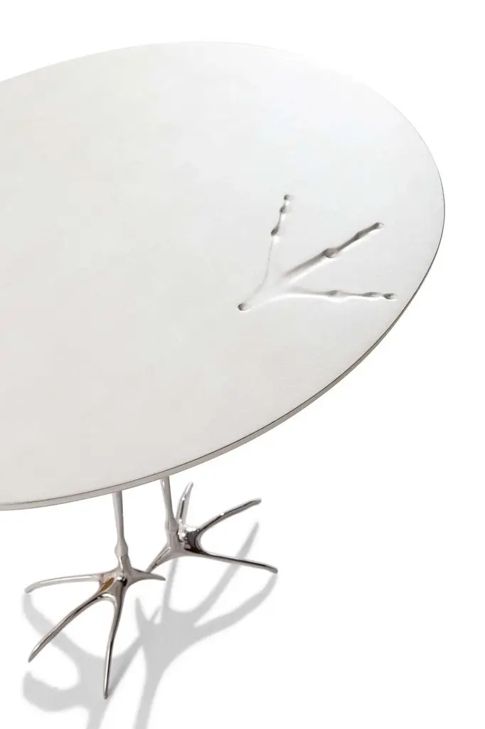 Price varies dependent on the choice of material and size. Meret Oppenheim Traccia sculptural table Manufactured by Cassina in Italy. In 1971, Dino Gavino launched what he called “l’opera d’arte funzionale”, or functional artworks, in so doing inaugurating a new approach of furnishing where surreal objects were adapted for everyday use. This led to the creation of the Ultramobile collection. These pieces, that went beyond (ultra) furniture (mobile) engaged the imagination, complementing rational intelligence with a sense of wonder, where geometry interacted with fantasy. One of these pieces was the low table that the Swiss artist Meret Oppenheim designed in 1929 for Leo Castelli’s avant-garde gallery, dubbing it the “Bird Leg Table”, for fairly obvious reasons.