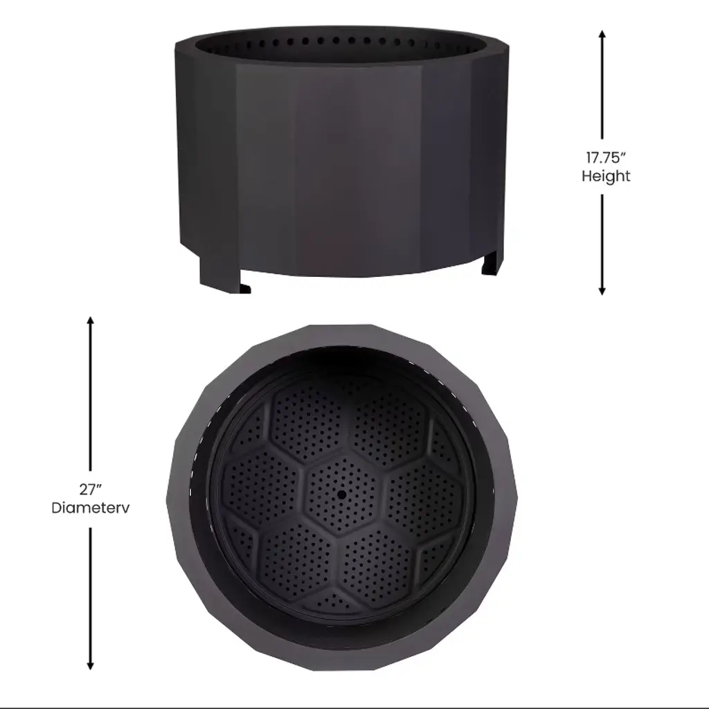 Cozy up wherever you go with this portable smokeless firepit. The sleek design sits up off the ground for added surface heat protection. Engineered with double walls for efficient air circulation, this firepit has low smoke and odor production so you can enjoy a bonfire without smelling like one. Durably crafted from steel with a waterproof cover to last. No assembly is required and a removable grate makes cleanup a breeze. Simply dump any ashes and wipe clean with a damp cloth.