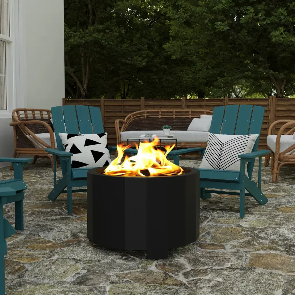 Merrick Lane 27" Portable Black Finished Steel Smokeless Wood Burning Outdoor Firepit With Waterproof Cover