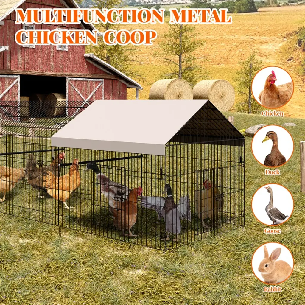 Metal Chicken Coop, Chicken Run For Yard With Waterproof Cover, Portable Poultry Cage, For Outdoor Backyard Farm Chicken Rabbit Duck