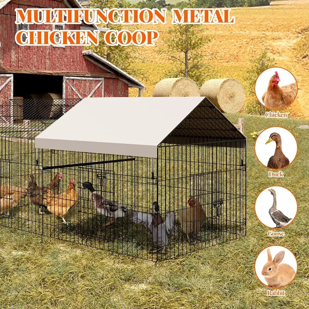 Metal Chicken Coop,chicken Run With Waterproof Cover Portable Poultry Cage Walk In Hen House,size : 130"l X 40"w X 40"h