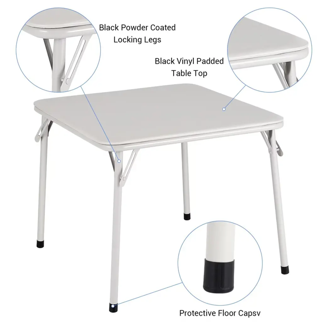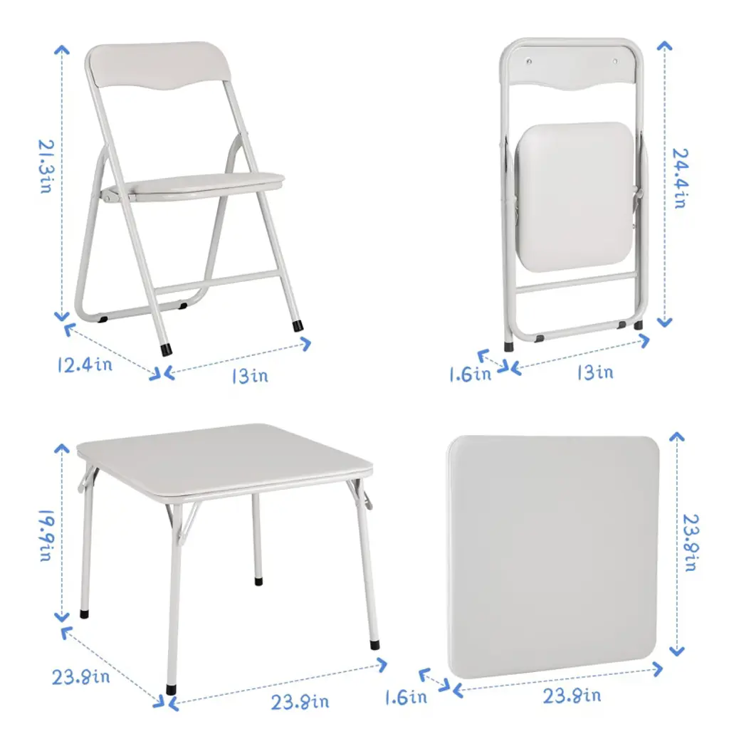 Metal Folding Chairs and Table, Leather Padded Folding Chairs with Comfortable Cushion and Durable Steel Frame, Upholstered Children's Activity Table Set for Eating, Reading, Playing, the folding card table and chair set is durable, with chairs featuring a triangular structure for enhanced stability and support of up to 100 pounds, ensuring reliable seating for any activity.