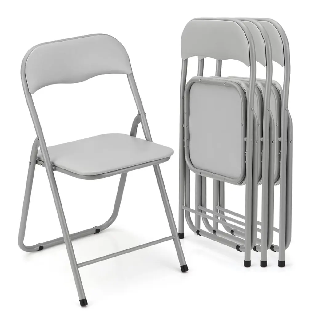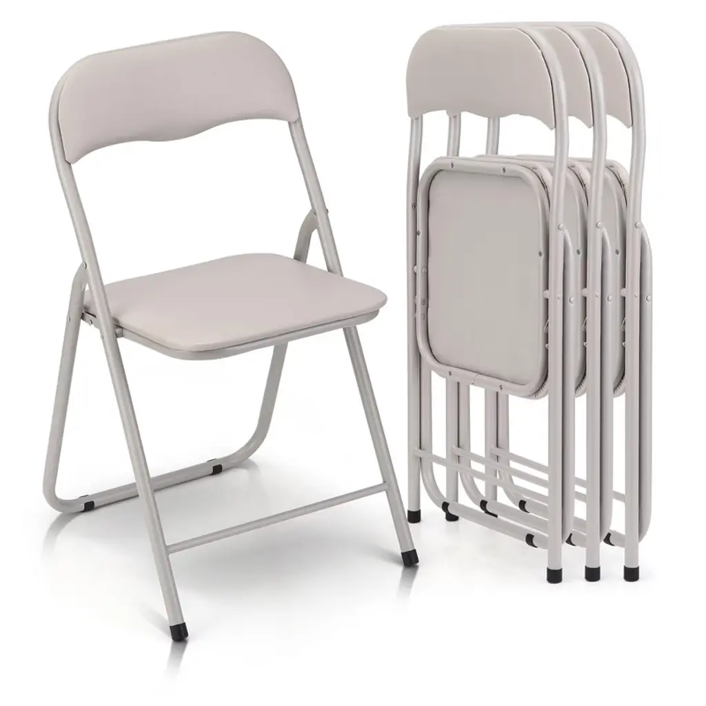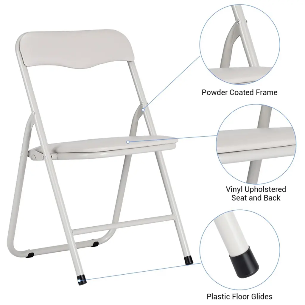 Metal Folding Chairs And Table, Leather Padded Folding Chairs With Comfortable Cushion And Durable Steel Frame For Eating, Reading, Playing
