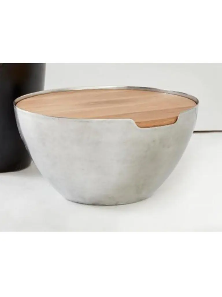 Metal walnut short basin coffee - side table by Hollis & MorrisDimensions: Diameter 26" x H 13" Materials: Solid wood. Spun aluminum. Hardwax oil, powder-coated metal. Brushed metal finish. Also available in natural oak, black oak, glass, and white oak. and, white or black powder-coated or customized finish. Anodized metal upon request.Beauty through thoughtful, function-inspired design. A spun aluminum basin is accented by rich oak or walnut, offering sheltered storage. Robust hidden brackets support the solid wood tabletop while a subtle dip in the metal provides a mouth to access the contents within.Based out of Toronto, Hollis & Morris takes its name from an intersection in Halifax where the company started as a series of garage explorations in design. A steadfast commitment to function with a distinctive approach to design. Hollis & Morris creates handmade furniture and lighting which carefully balances modern and honest designs. Versatile, well crafted, and timeless. Pieces by Hollis & Morris easily complement residential, commercial, and hospitality spaces. Driven by respect towards natural and honest processes, trademark integrations of solid wood and metal celebrate the inherent strengths of each material, resulting in thoughtful, quality pieces made to last with you throughout the years.