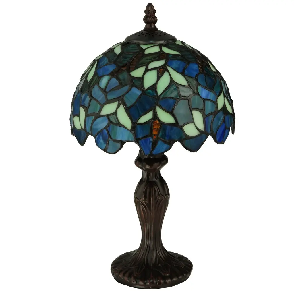 Capture the tranquility of a garden stroll at nightfall with this Nightfall Wisteria mini lamp by Meyda Tiffany. Imagine wandering under darkening skies, past the deepening blooms and climbing vines of the wisteria shrubbery, as you prepare for a restful night of welcome slumber. This beautiful mini lamp, created with blue, blue/green and green art glass using the copper foil construction process made famous by Louis C.Tiffany in the early 20th century is a masterpiece to be proudly displayed and privately enjoyed in any home or interior setting.Features:Dimensions:Electrical Specifications: