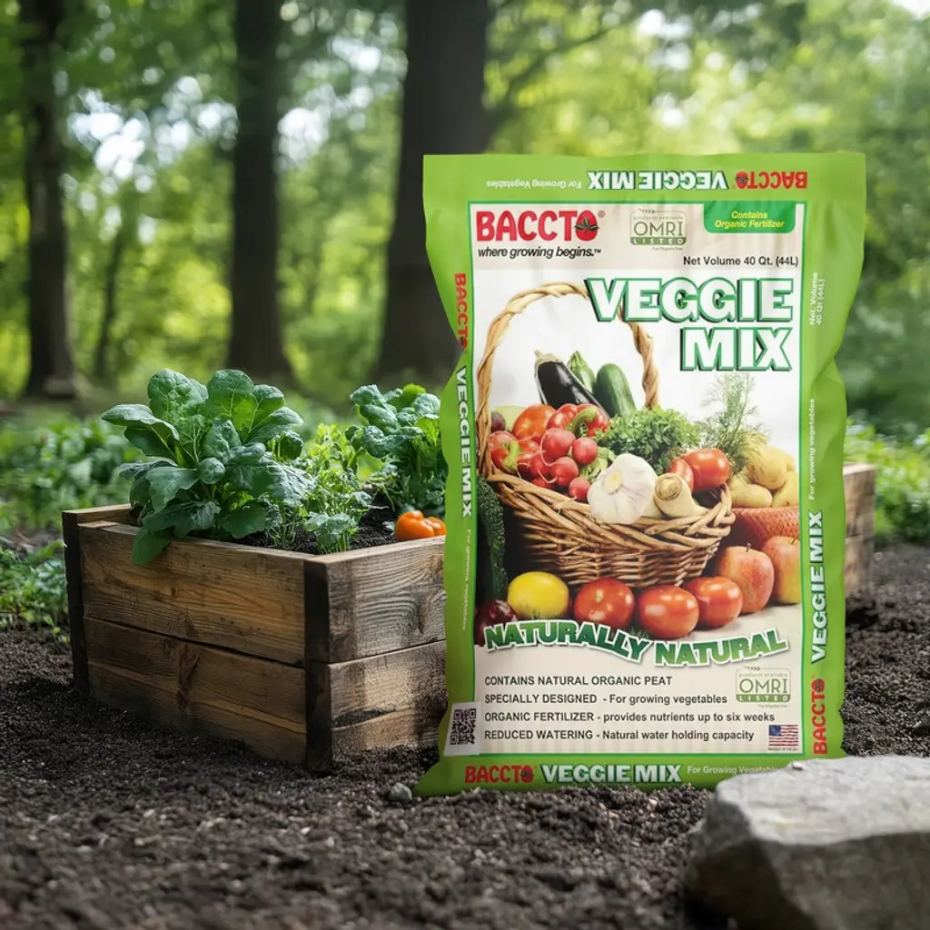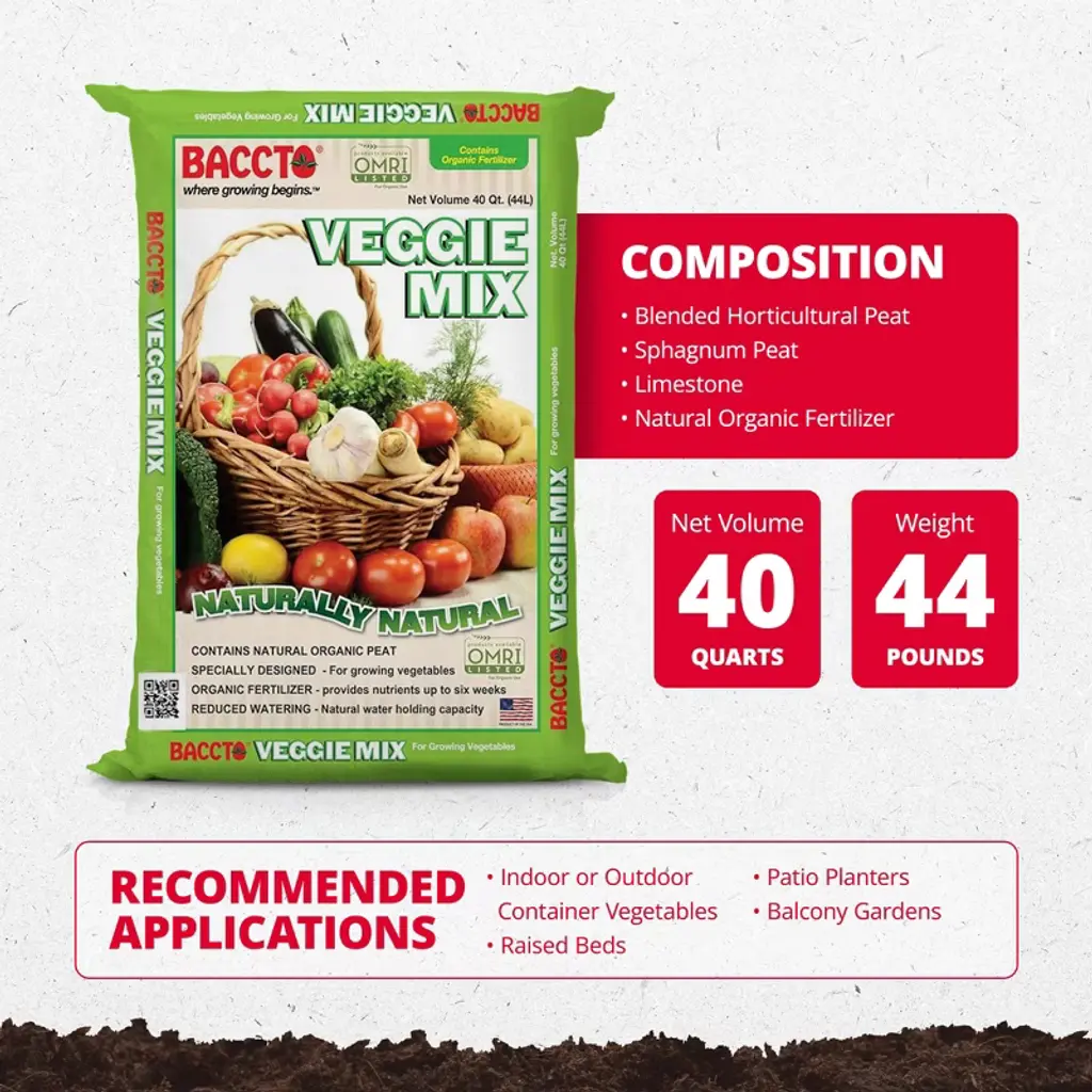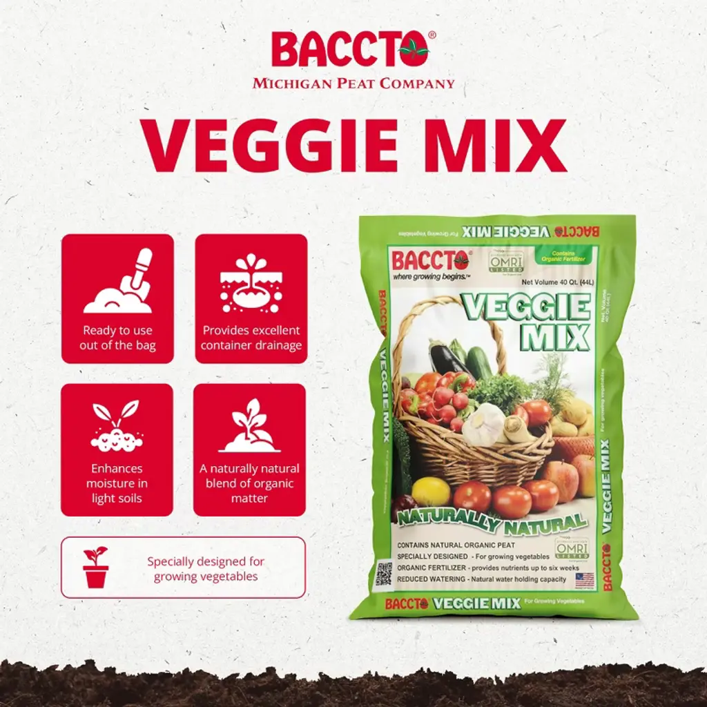 Michigan Peat Company Baccto Veggie Mix With Peat Moss, Indoor Outdoor Organic Nutrients For Planting & Growing Vegetables, 40 Quart Bag