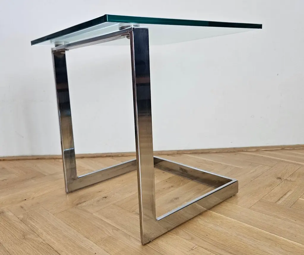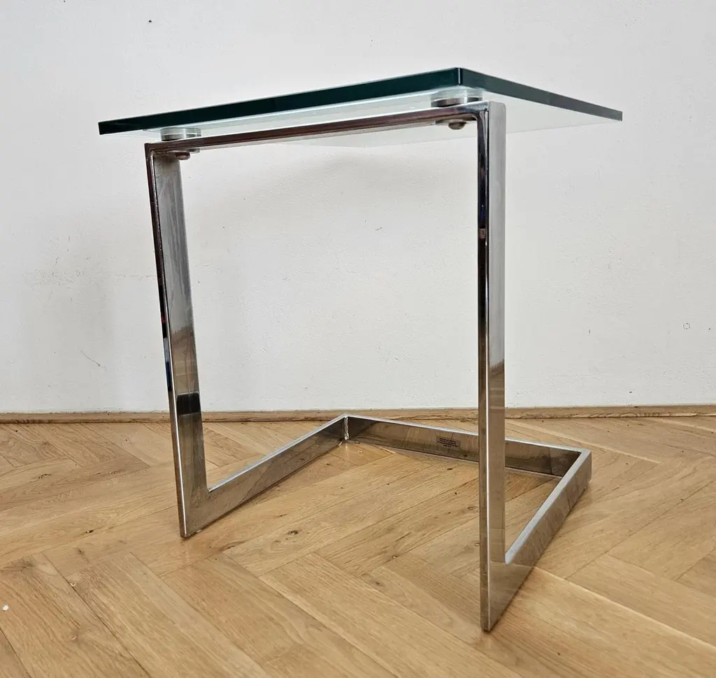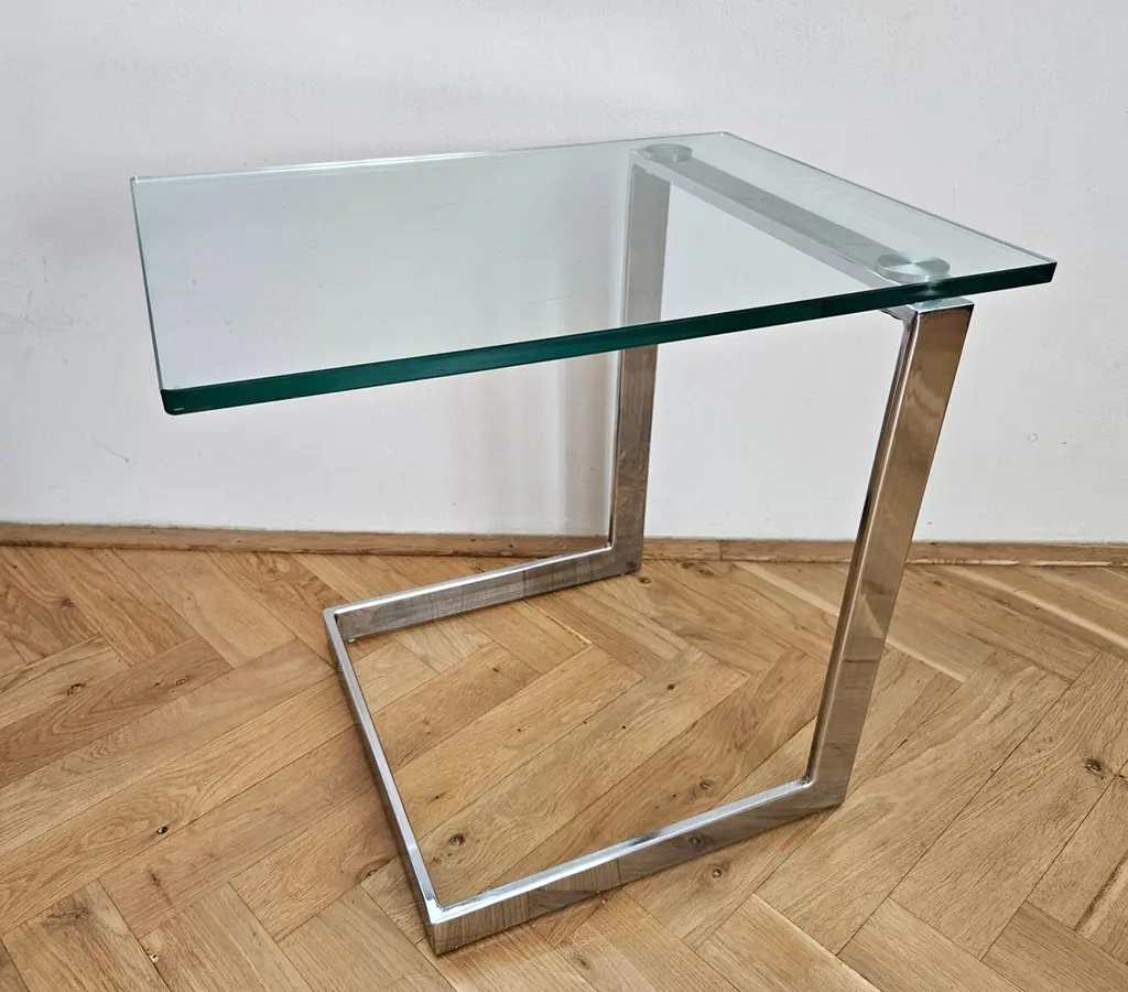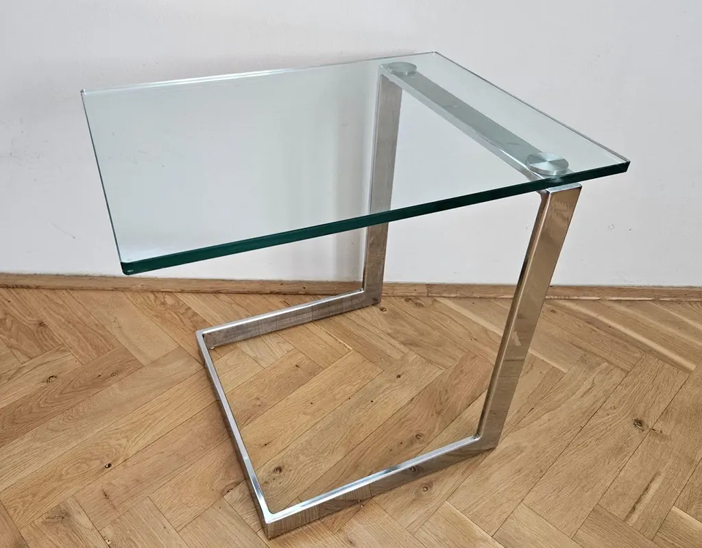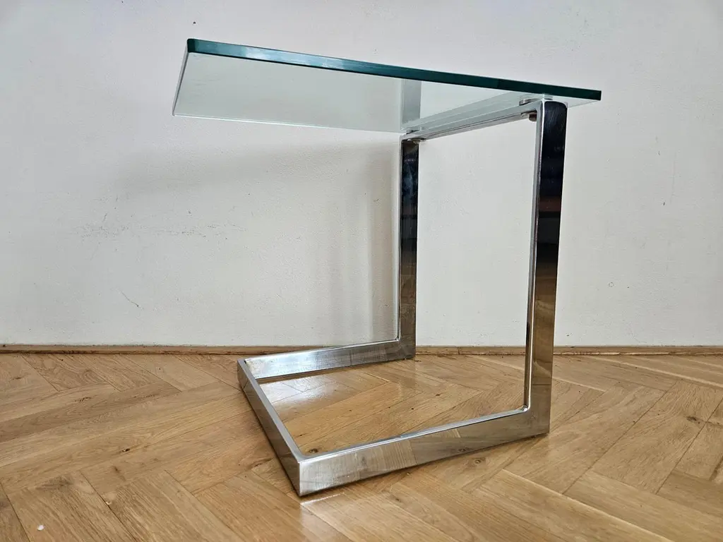 Midcentury Design Cantilevered Glass & Chrome Side Coffee Table Gebra, 1980s