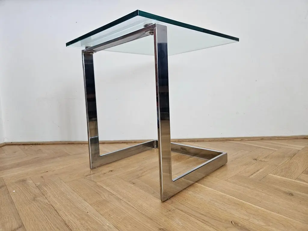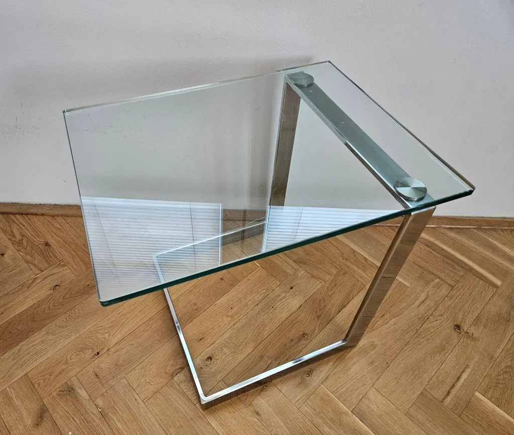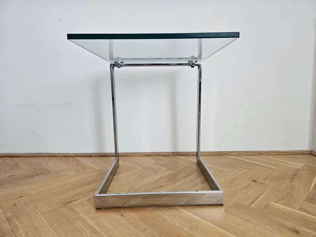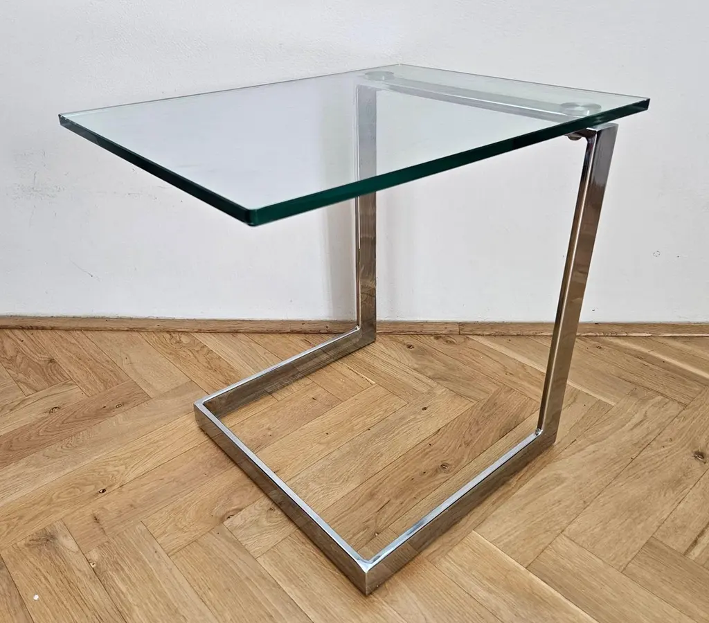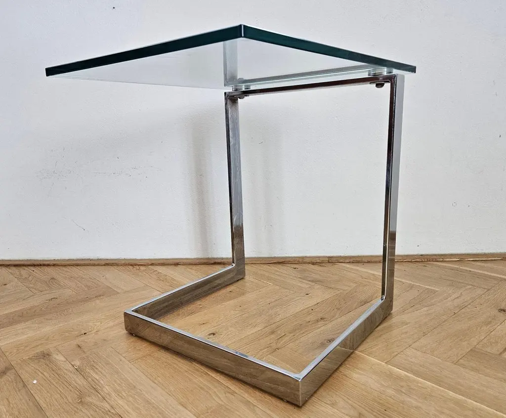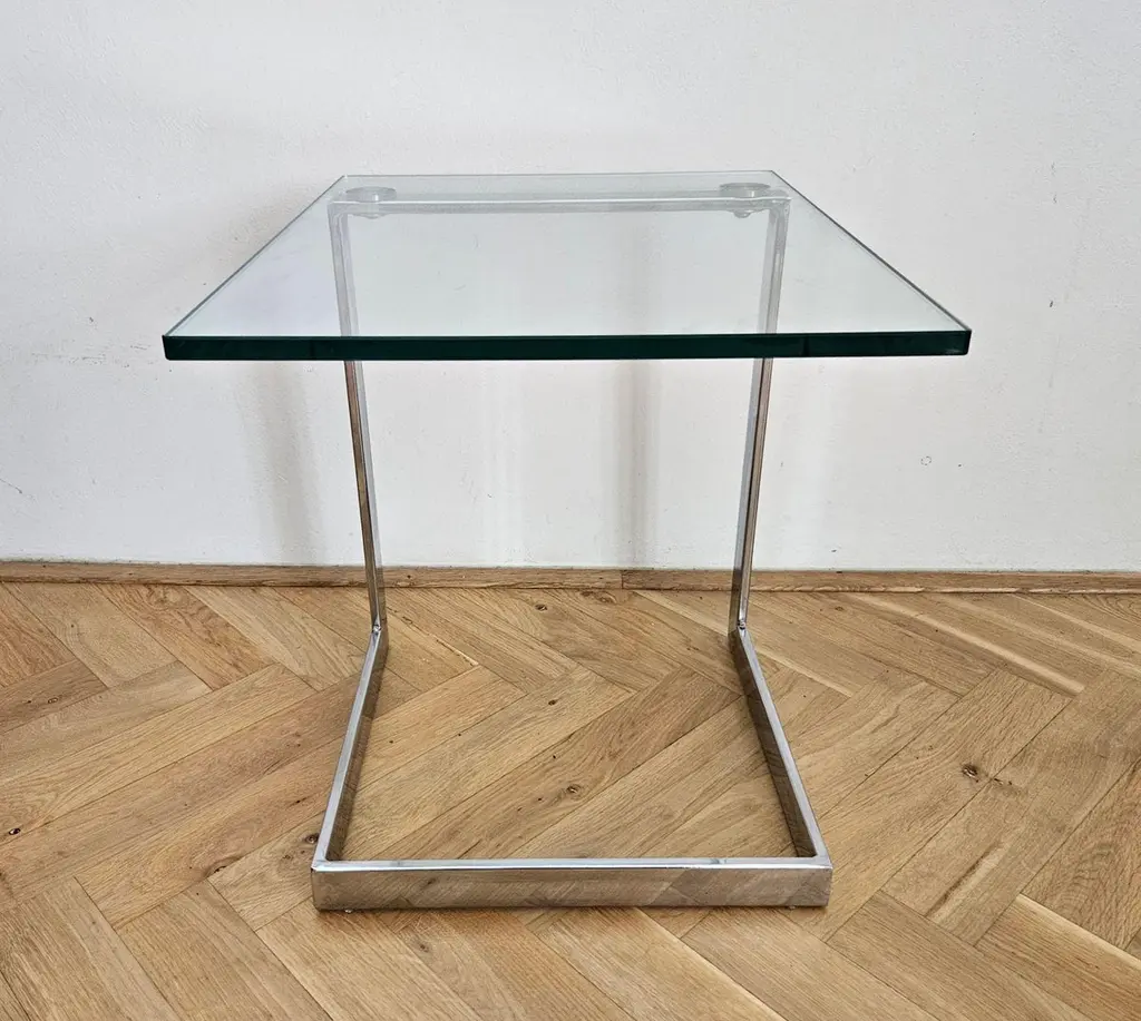 Midcentury Design Cantilevered Glass & Chrome Side Coffee Table Gebra, 1980s