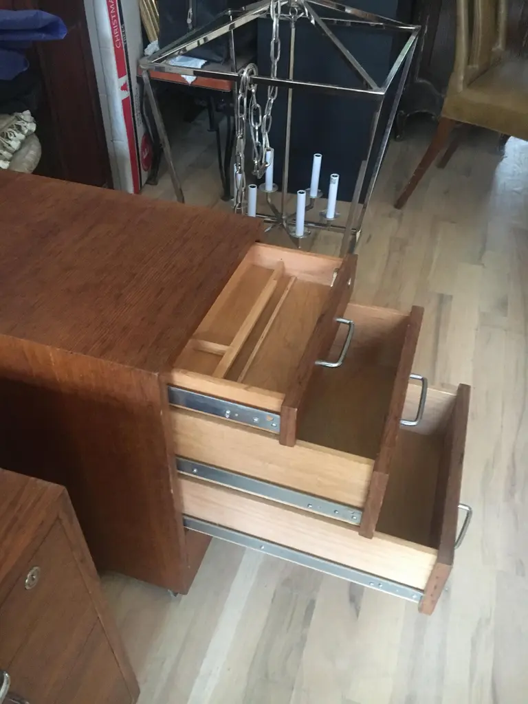 Midcentury Teak Three-Drawer File Cabinets On Casters, Great Bed Side Tables