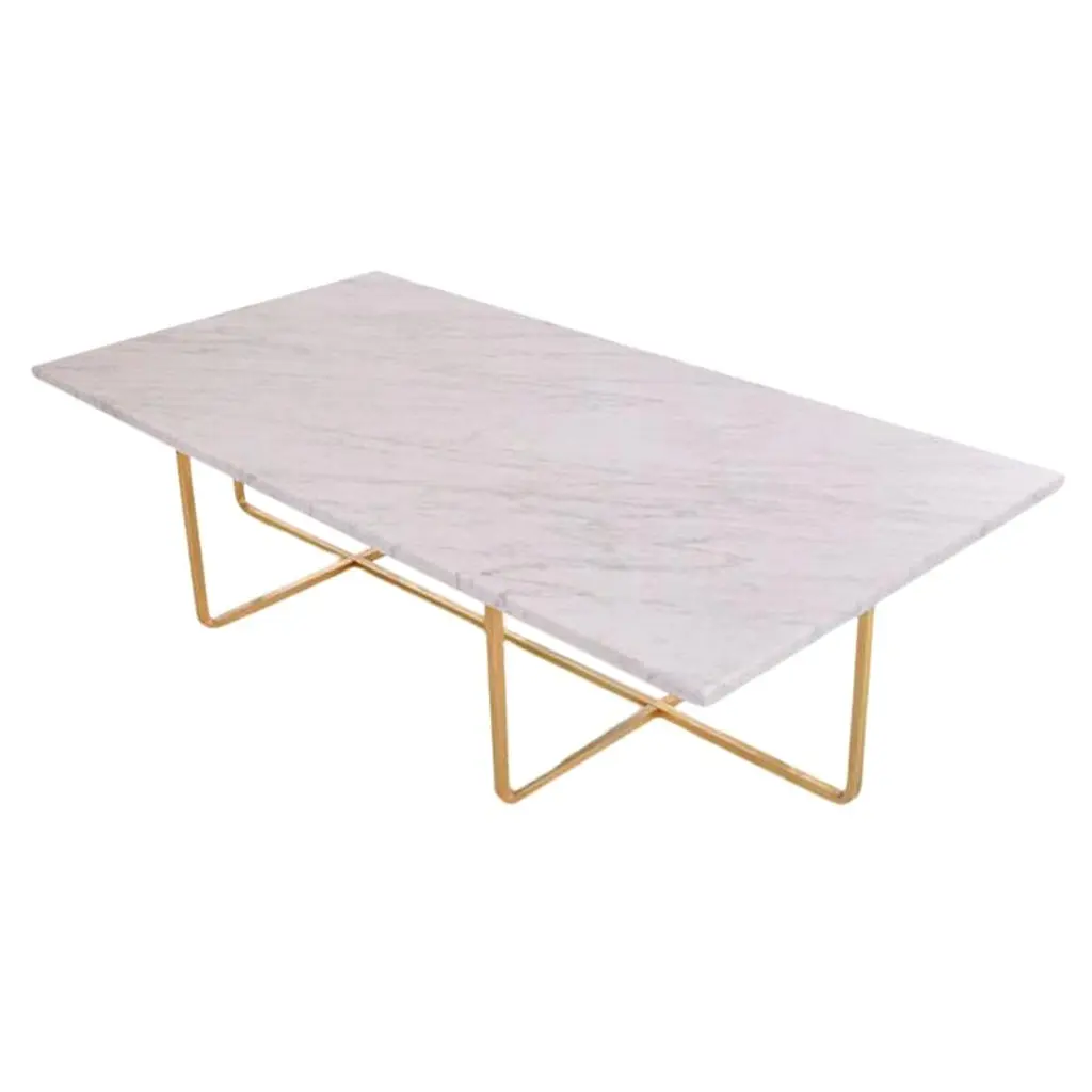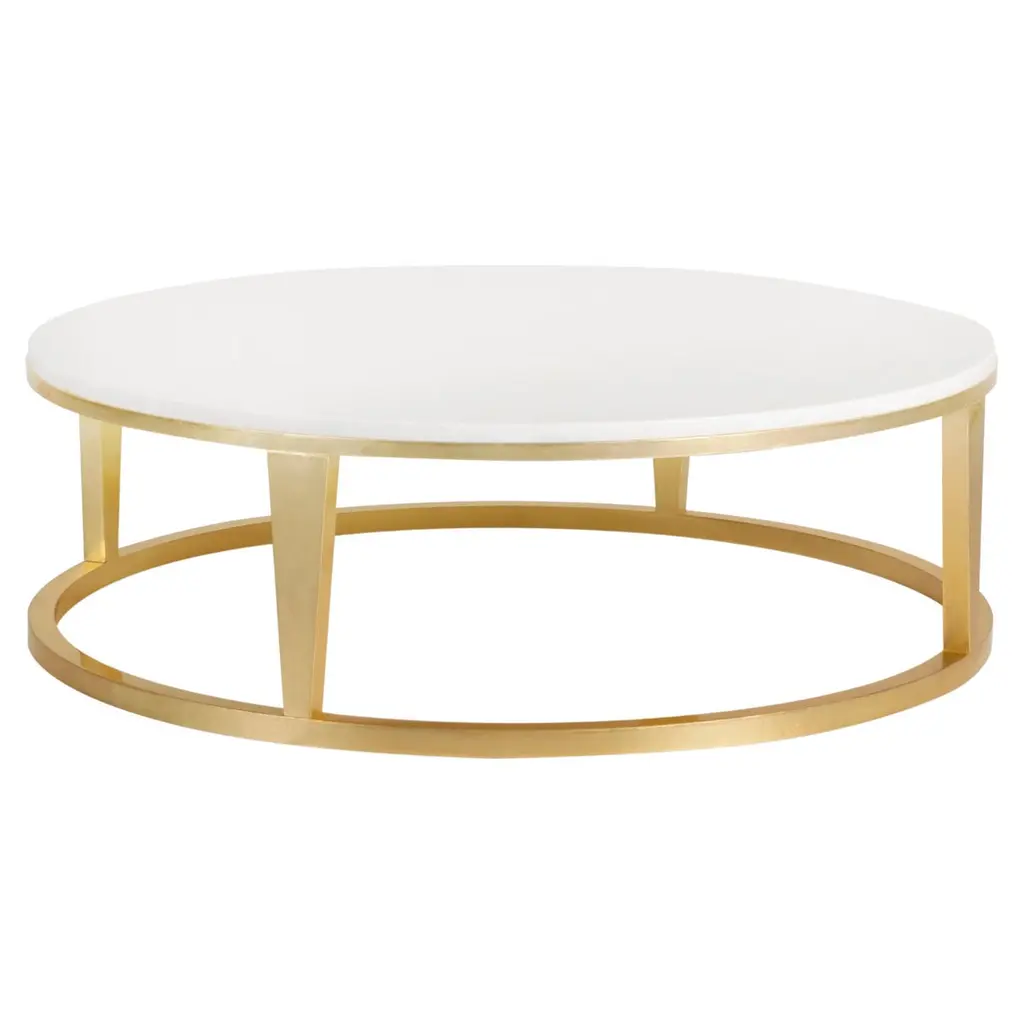 Middle coffee table by Joseph Vila CapdevilaMaterial: marble, solid brass, silver solderDimensions: 65 diam x 26.5h cmWeight: 20kgLow table composed of a round top made of treated marble and four brass legs joined together by cross-bars welded with silver.Aparentment is a space for creation and innovation, experimenting with materials with the goal to develop robust, lasting and timeless designs.Aparentment collections feature contemporary and casual sophistication. Parts made of noble materials such as Carrara marble, wood and brass play with the concepts of style and uniqueness.Josep Vila captures in his collections the creative discourse that motivates him as a professional. On the one hand, printing his aesthetic character in accessible designs with an artistic touch, playing with the metaphor & contradictions (like a Brique made of marble), transgress without losing the sophistication and looking for the opportunity to offer something different, working from design to production with local craftsmen and manufacturers.Josep Vila Capdevila is the founder and Head Designer of Aparentment, he graduates in Industrial Design By Elisava University in 2001. He postgraduates in Photography in Elisava and 3D Design Engineering at UPC. His multiple interests lead him to get involved with advertising, fashion, photojournalism and even music.In addition to his work under Aparentment, he was a teacher of Industrial Design at “Escola d’Art i Disseny de Terrassa” and won a LUX bronze award for ‘Best advertising photograph