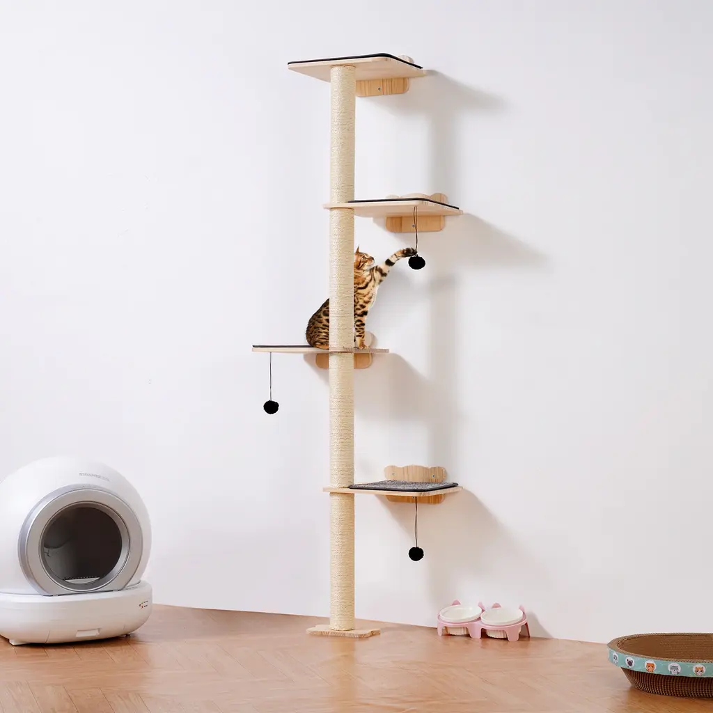 Cats naturally love to explore, and every inch of your home can be a cat's playground. A cat apartment is a must-have in the home, providing a perfect haven for cats to climb and rest. The unique design can not only satisfy the cat's desire to climb, but also help them maintain good posture and vitality. Cats can look down on their territory from the top, satisfying their curiosity and letting them enjoy the freedom and safety of being up there.Modern Design: The wooden elements added on this cat tower and irregular platforms make the entire cat tree modernize. When designing this cat tree, combine the rustic light oak wood and chic white, allowing your space to upgrade to create a warm and harmonious tone. Home style, let your space upgrade. It does not take up too much space and can be placed in your room, living room or balcony at will.Multi -Platform Fun: Cats can enjoy the fun of scratching, climbing, sorting out, and playing. The four levels maintain the fun of cats, so that your cats are practiced at any time anytime, anywhere. There are a lot of jumping platforms and a hole in a hole Drilling. These platforms can be used to rest or exercise. The cute and troublesome manufacturer who likes to climb and chase cannot miss this cat tree! The hanging furry balls will make them crazy!Spacious And Private Cat Nest: Cats like to stay in an unreachable cat apartment. This large and sturdy place provides a perfect place for cats to rest, relax and avoid the world. The wide door allows your cat to easily enter and find their best posture in order to take a nap or stroll. This cat tower will be the best place in your home, make sure your cat or growing cat sleeps and relax in luxury!Safety And Sturdy: The bottom plate of the cat tree is reinforced to achieve better balance and overall stability. When your kitten climb up and jumps down, it will not shake and fall. To better, it does not take up too much space. Can be placed in any corner at will. Composed of reinforced boards and sturdy pillars, this cat furniture tree keeps your lively kitten safely.The Assembly Stability Is Simple: Our cat activity tree is carefully designed with a reasonable structure and made of high -quality materials to ensure stability and durability. Cats can jump and scratch the cat trees freely and safely without shaking. It is also very easy to assemble. According to our step -by -step explanation, you can complete the assembly within 5 minutes, and then let your kitten play immediately.