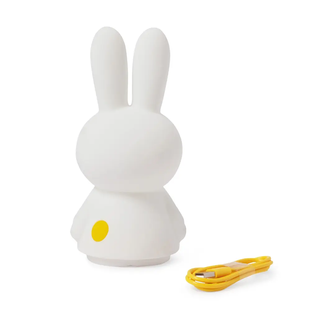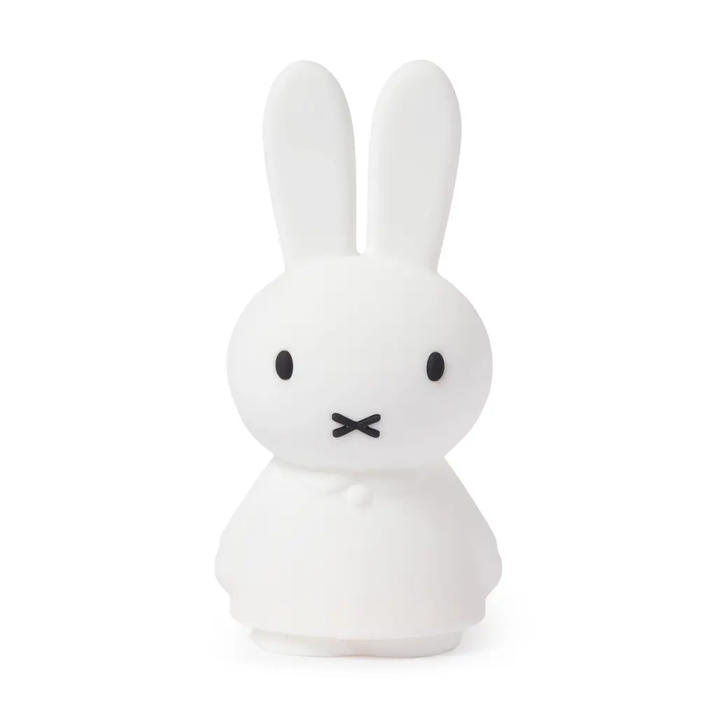 We’re celebrating Miffy’s 70th anniversary with new designs, such as this LED portable light. Crafted from white high-quality soft silicone, she offers an ambient glow for a peaceful atmosphere and a gentle, comforting touch. Set the dimmable LED light to the brightness you need with a simple tap. Choose from a soft light for bedtime to a bright reading light. An adorable light for adults and kids alike, based on Dutch artist Dick Bruna’s beloved bunny. Features of the Miffy Shines LED Portable Light features: BPA-free soft silicone. Low-energy LED lighting source. Unique Miffy standing version. (Most Miffy lights feature her sitting.) 4-step touch dimming. LED light turns off automatically after 1 hour. Wireless, portable design. Charges via USB-C in 6 hours for approximately 8–120 hours of light. Safe for children. Measures 8.7h x 4.3w x 3.7"d.