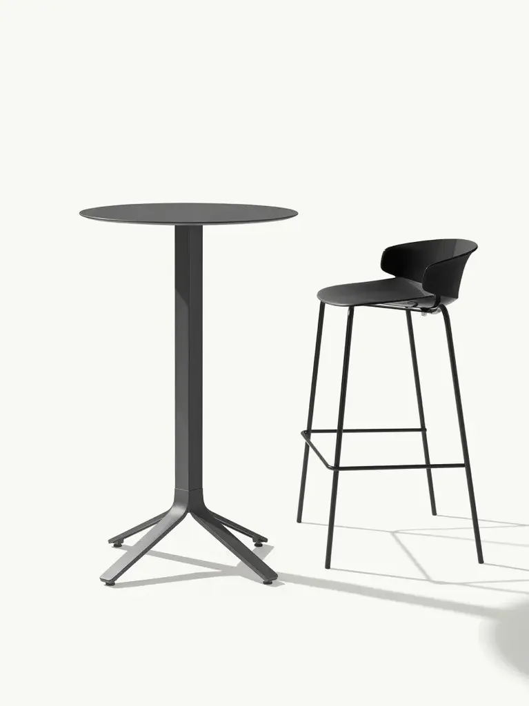 Table frame with aluminium base and column. H 105cmThe Milos tables are modern elements where engineering and aesthetics dialogue in favor of greater versatility in terms of use and function. The structure is defined by pure and architectural lines that slide upwards to the round or square top. The material is a high-pressure die-cast aluminum, fully recyclable, with great mechanical sturdiness that guarantees perfect stability thanks also to the 4 ways aluminium frame with adjustable gliders.Table top of various sizes, round and square, practical and functional that adapt easily to the different contexts of conviviality and hospitality. A collection able to live both indoors and outdoors and to be combined with lounge seats, chairs and stools thanks to the 3 heights available for the columns.A project that responds perfectly to the willingness of Et al. to offer products whose features not only emerge in terms of aesthetics but also facilitate the dynamics of those who work in a contract environment.