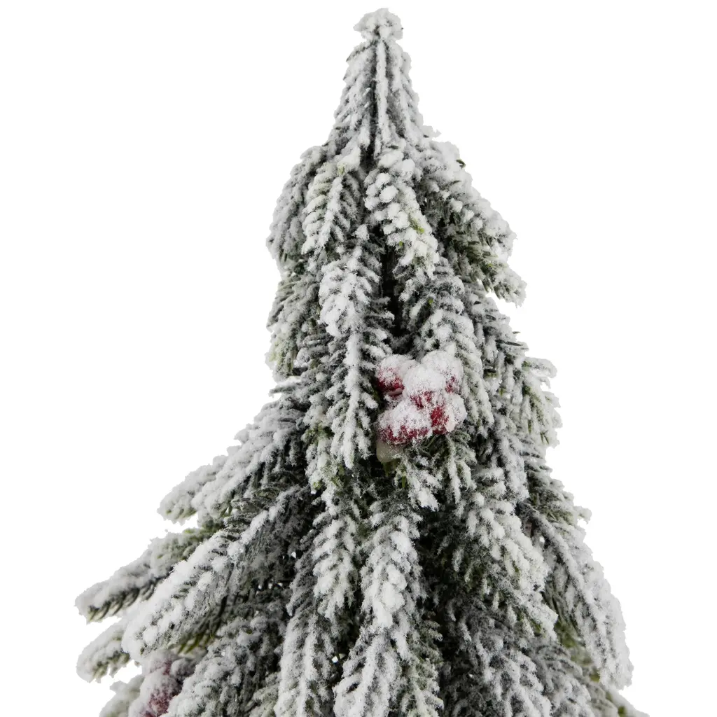 Mini Flocked Downswept Pine With Berries Artificial Christmas Tree - Unlit - 14" - Tabletop - Green - 1 Foot