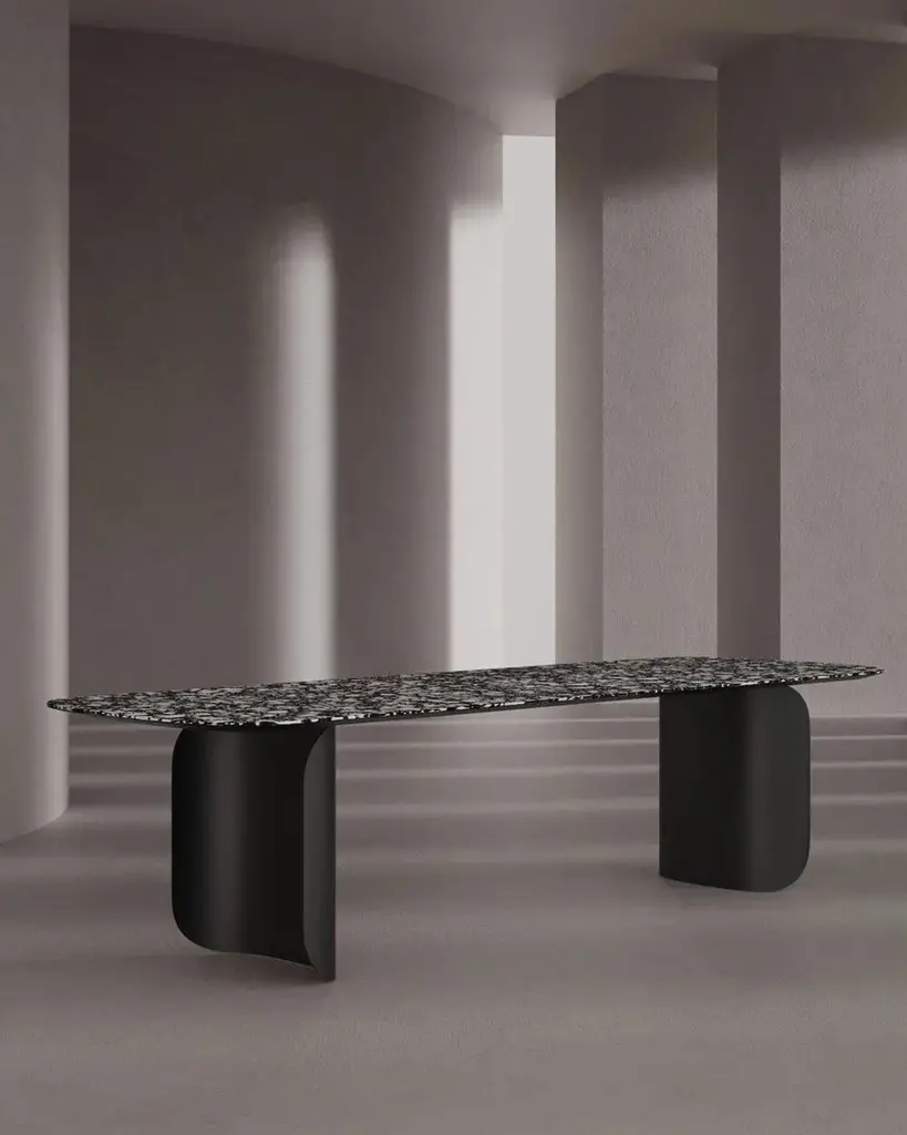 Barry is a distinctly graphic table sporting intriguing volumes, a mixture of solidity and lightness. The legs form a prominent feature and curl distinctly around themselves, revealing the table’s dynamic personality. Barry provides reassurance in the home or office.Top Finishing• Lacquered Antracite• Lacquered Bianco• Lacquered Bisanzio• Lacquered Bloody Mary• Lacquered Burro• Lacquered Creta• Lacquered Grigio Seta• Lacquered Mattone• Lacquered Nero• Lacquered Nuvola• Lacquered Pino• Lacquered Pompei• Lacquered Zucca• Palladio Doge• Palladio Moro• Calacatta Black• Ceppo di Gré• Emperador• Statuario White• Tafu• Black Ash• Canaletto Walnut• Flamed Oak• Heat-Treated Oak• Vintage OakLegs Finishing• Lacquered (just like the top)• Bronze• Rose Gold MattDimensions: • Small: 200 x 100 x 75 cm• Medium: 240 x 100 x 75 cm• Large: 300 x 100 x 75 cmPrice refers to the large version.