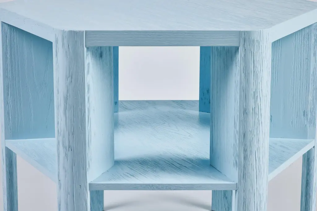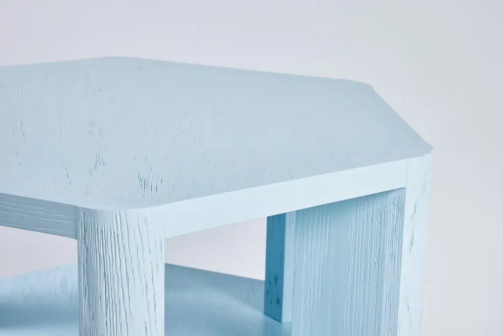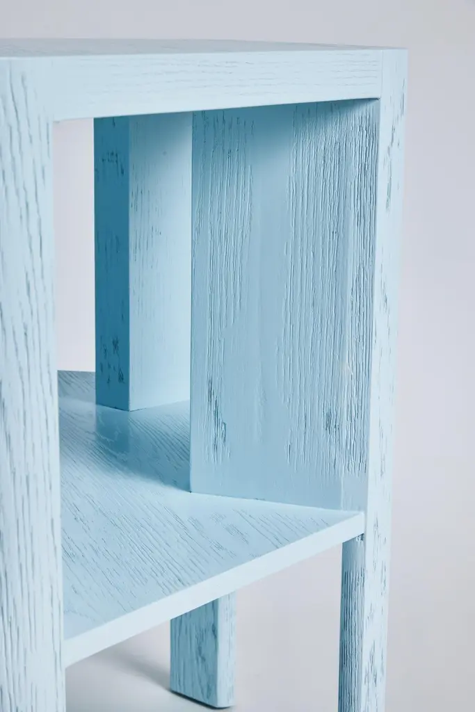 Minimalist Modern Lacquered Large Library Table Shown In Blue Fog On Oak