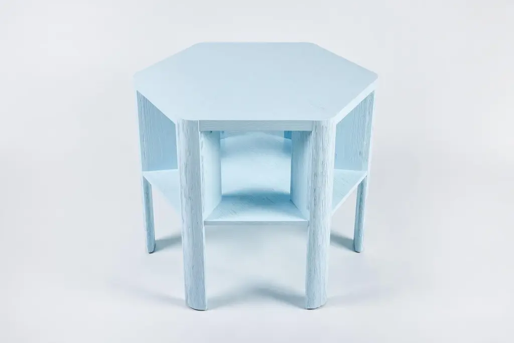 Martin & Brockett's Library Large Table, in Lacquer is a chic work horse. Stripped of unnecessary details, its minimalist design makes this table functional for sober book storage or as an efficient small space bar (bottle storage below frees up the table top for mixing cocktails). It features an architectural hexagon shape and a textured surface.Standard: H 29 in. x W 36 in.Part of our Library Collection.Lead time: 15-16 weeks.Available for order in additional wood finishes and custom sizing.