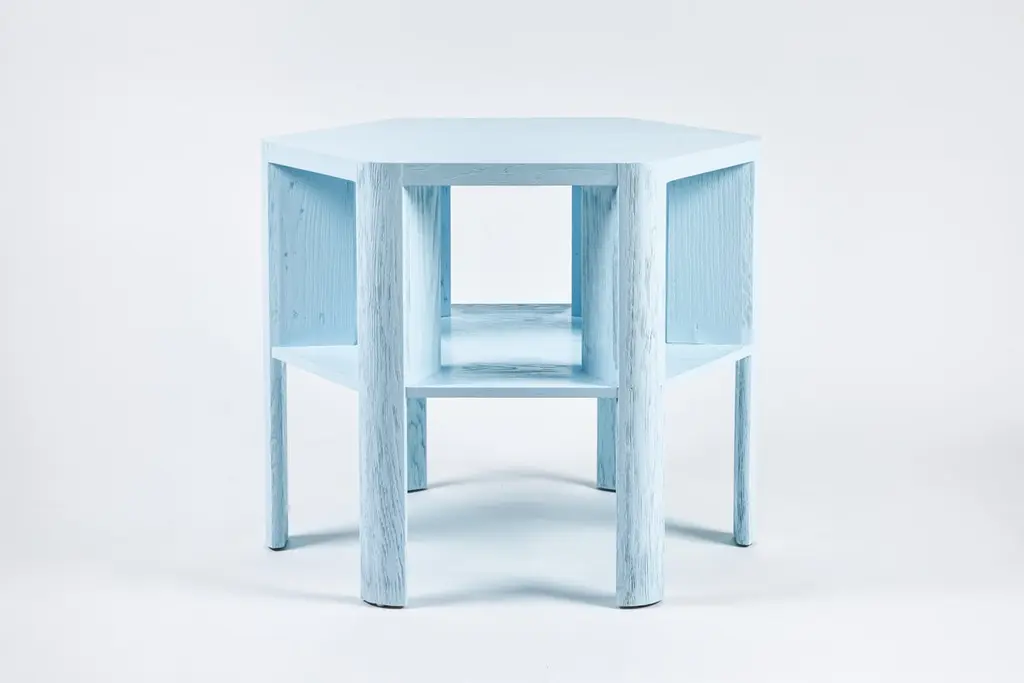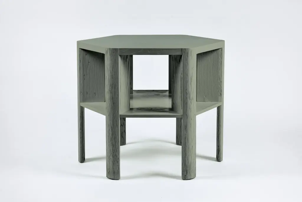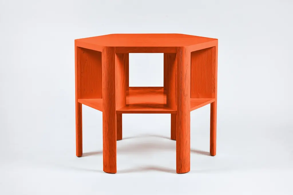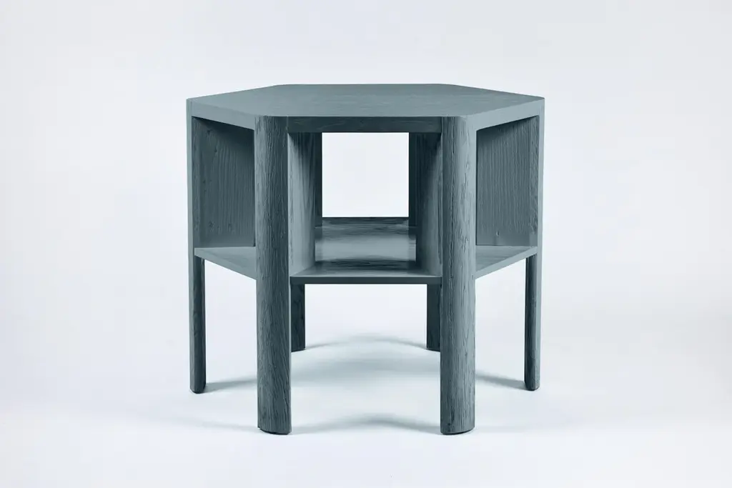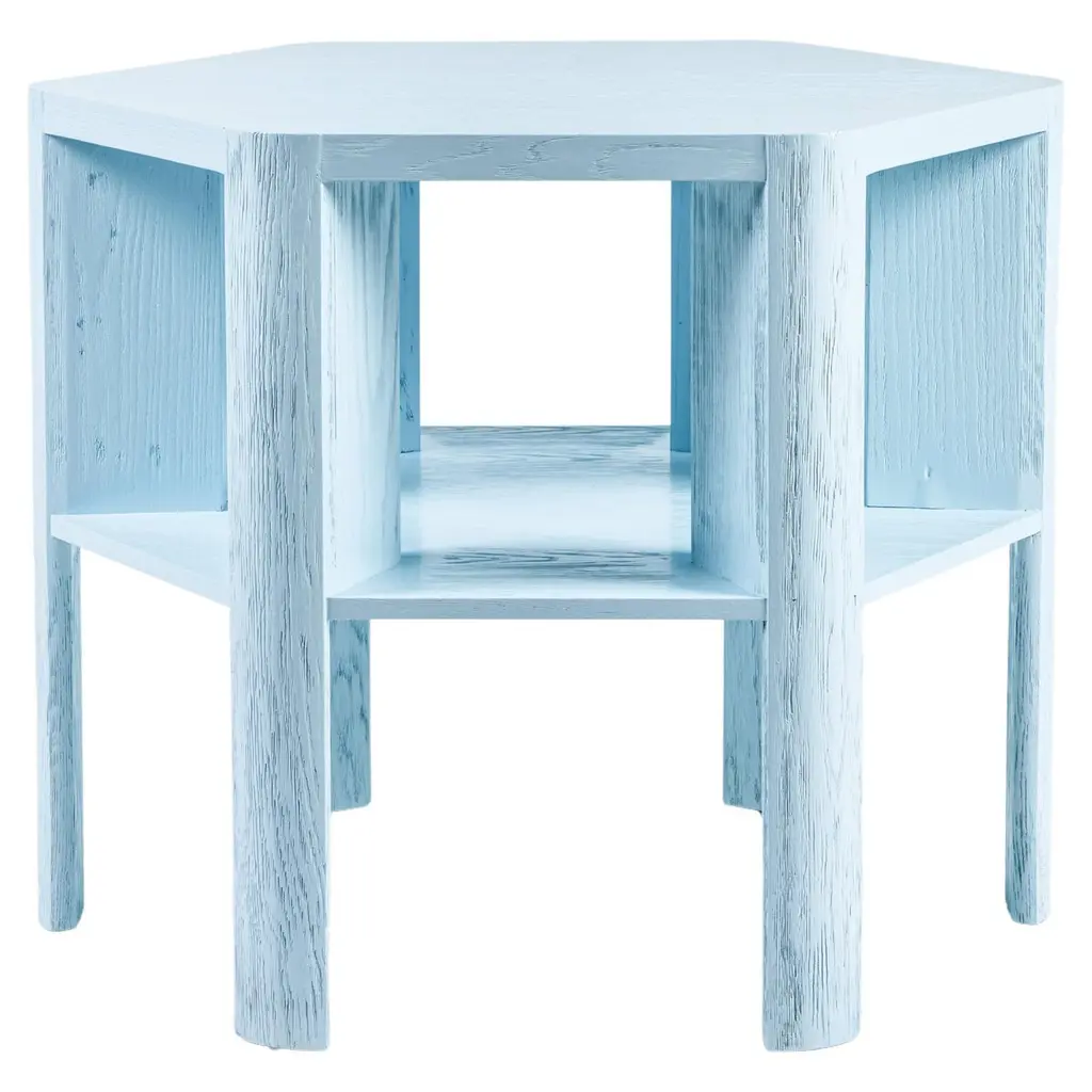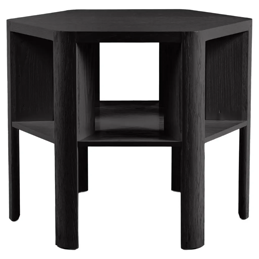 Martin & Brockett's Library Large Table, in Lacquer is a chic work horse. Stripped of unnecessary details, its minimalist design makes this table functional for sober book storage or as an efficient small space bar (bottle storage below frees up the table top for mixing cocktails). It features an architectural hexagon shape and a textured surface.Standard: H 29 in. x W 36 in.Part of our Library Collection.Lead time: 15-16 weeks.Available for order in additional wood finishes and custom sizing.