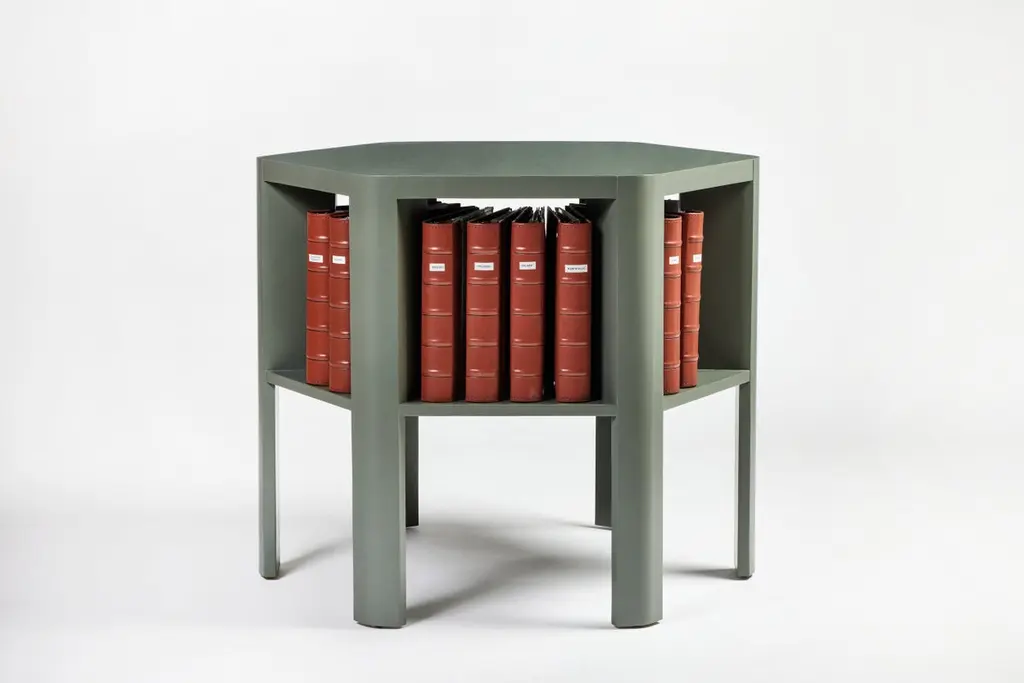 Minimalist Modern Lacquered Large Library Table Shown In Lichen On Oak