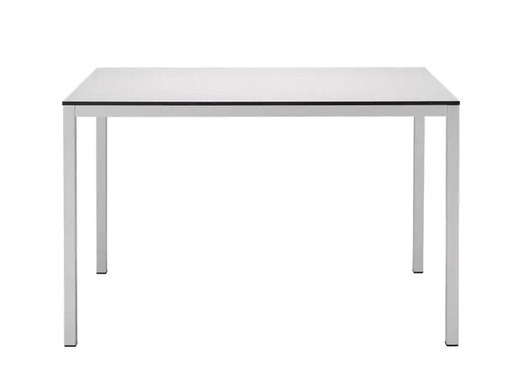 Modularity is the distinguishing feature of Mirto, a very versatile table which is suitable for decorating any type of environment, from contract to outdoor, the wire-frame top allows the perfect alignment of tables without waste of space or penalization of seats. With an essential shape, MIRTO captures attention with the sharp lines of its white and anthracite compact laminated top, available in square or rectangle shapes. Sturdy, stable, and easy to stack, it tastefully combines with all the seats of the SCAB Design collection. Frame in powder-coated steel, 4 adjustable feet.
