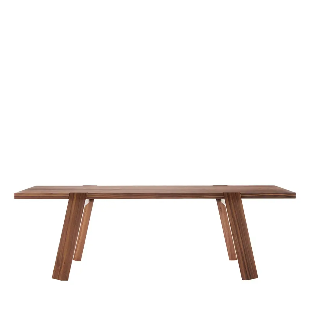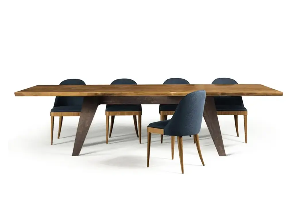 The B-185 table is available with two types of legs, both in the rusted version. In option 1, the structure of the base is described in sloping lines and clean lines. In the second, the legs take on a linear form, with rounded corners for a contemporary touch.• Colour: Canaletto walnut• Finish: Olil• Legs: Oblique or Sled Base