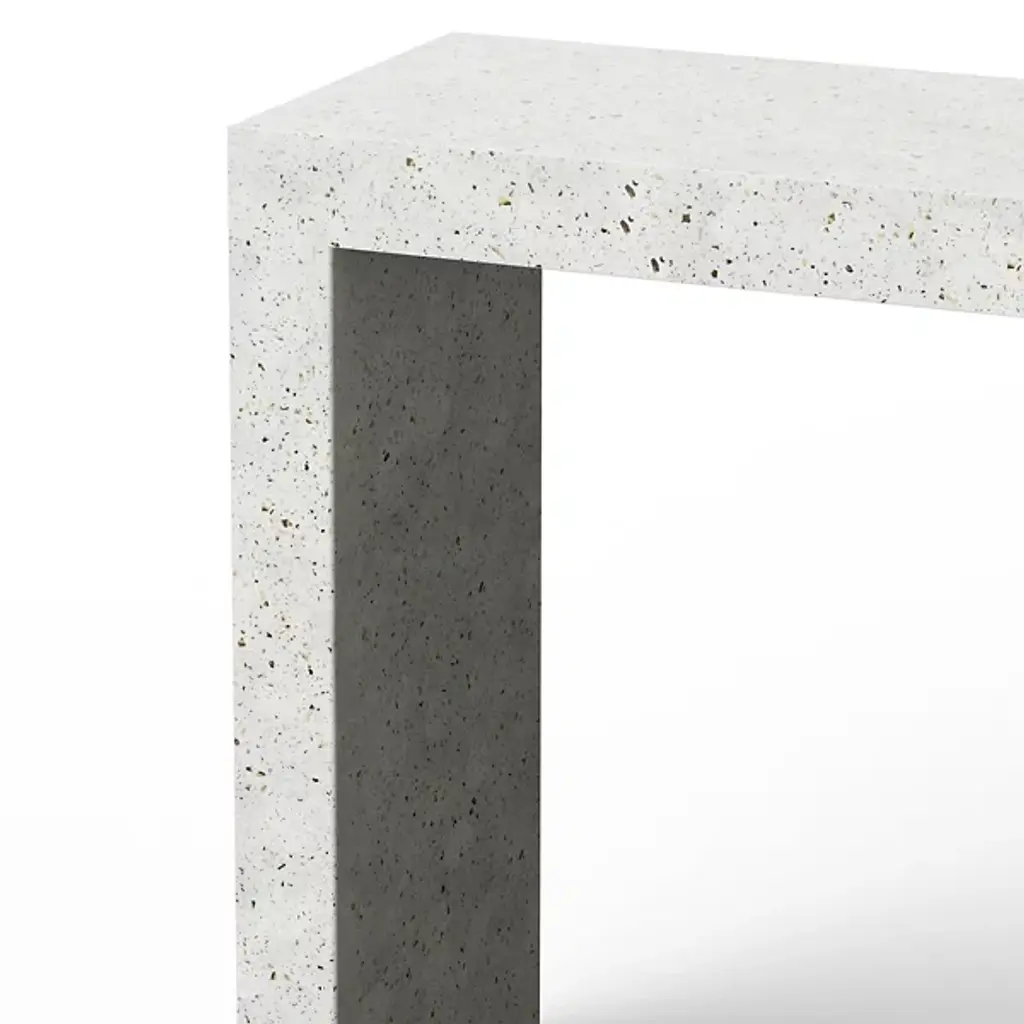 The simple elegance of the Mixx You Console Table by Urbia is perfect for smaller contemporary spaces. It's beautifully hand crafted from concrete with all-natural jute fibers incorporated into its mix for enhanced durability and support. The clean-cut style allows this console to blend gorgeously with any décor scheme, making it perfect for displaying family pictures and plants in an entryway or living room. Additionally, its handmade construction imbues its surface with unique color, size and texture variations.
