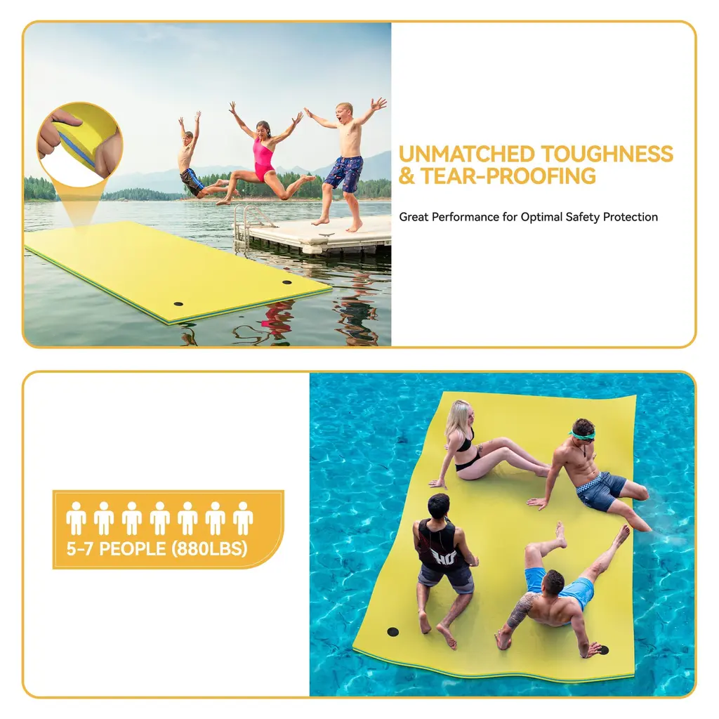 Moasis 12' X 6' Lily Pad Floating Mat Water Mat Inflatable Rafts Lily Pad Pools Beach Xpe Floating Island - 12' X 6' - Yellow-Blue