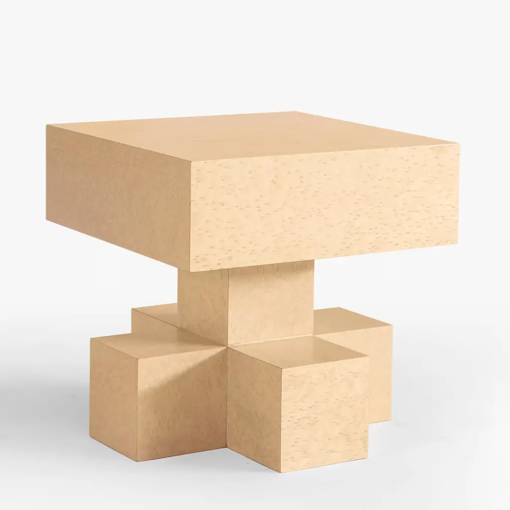 Mobili Sintetici celebrates the basics of carpentry: straight and inclined square cuts, veneering, surface, and edge finishing. The objects of the Sintetici collection, allude to robotic or mechanical imagery with vaguely anthropomorphic features and do not seem to come from a traditional production but rather the result of an experimental process of synthesis. Materials: pre-composite veneered plywood. Please ask the concierge for further information and options.