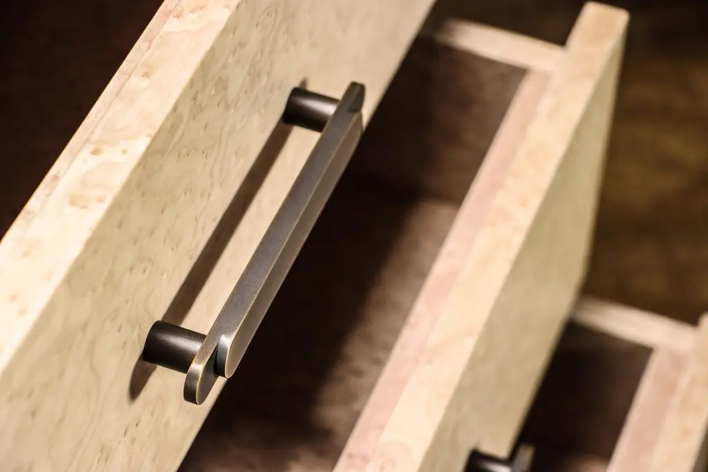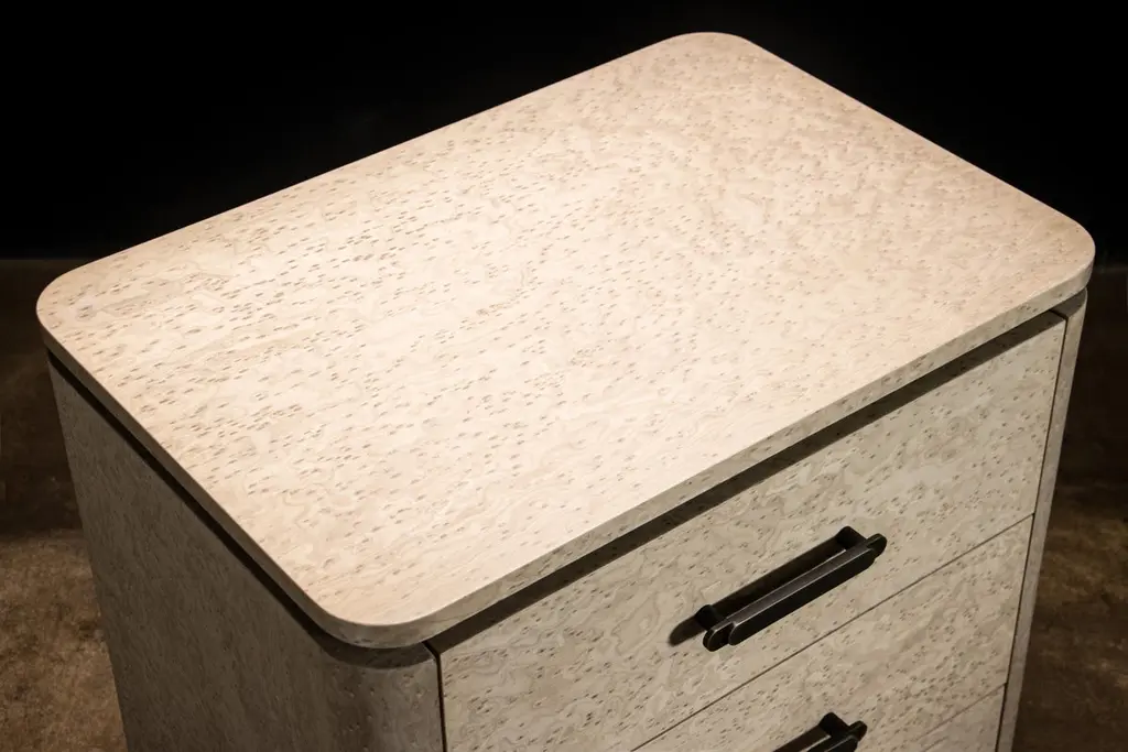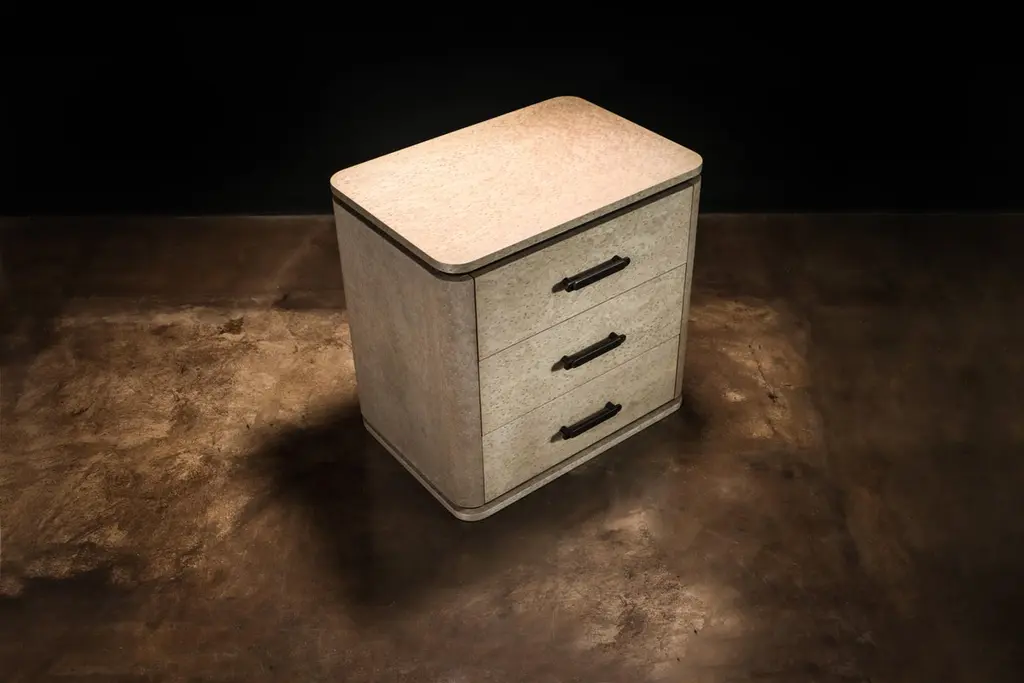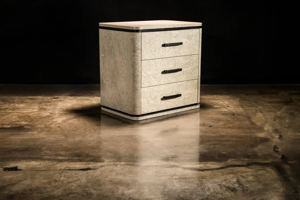 Elena Modern Bedside Table, shown in Gray Birdseye Maple & Bronze from CostantiniMeasurements are 25.5" W x 18" D x 25.5" HThese modern yet timeless nightstands are customizable in your desired size, finish and material. Please note that the pulls are from The Beardmore Collection and are sold separately. (Please add $600 per nightstand for pulls as shown)Also shown in walnut. Other materials available are Argentine Rosewood, Oak, Maple, Cherry, Beech, Elm, Okume, Teak, African Teak, Bird’s Eye Maple, Black Maple, Bubinga, Cerused Oak, Cerused Gray Oak, Gray Oak, Ebony, Macassar Ebony, Striped Macassar Ebony, Walnut Burl, Sycamore, Walnut and Zebrawood. Also available in any type of stone; Carrara, Calcutta Gold, Nero Marquina, St Laurent, Blue Jeans, Onyx and more. Available in matte, semi-gloss, high gloss finish or lacquered. Available as shown or customizable to your desired size, shape, finish, and more.About Costantini DesignCostantini is a furniture design and manufacturing company founded in 2002 by artist and designer William C Stuart. The name Costantini comes from his maternal grandfather, a first generation Italian-American. Born in New York City and raised upstate, William majored in studio art at Colgate University with a year abroad in Paris, graduating with honors. In 2001, he traveled to Buenos Aires and fell in love with the culture and craftsmanship instantly. He designed his first collection soon after and opened an art and design gallery in Los Angeles. A decade later, he came home to New York and now has a studio in the famed West Chelsea Arts Building where his works blur the lines between art and functional design. The team of artisans continue to produce the majority of the furniture in Argentina. Aside from private collections, some notable public projects include the Hotel Bel Air, the Sultanate of Oman, Bergdorf Goodman, NoMad Hotels, Four Seasons, Ritz Carlton, and Grand Hyatt. Our work has been featured in publications such as Architectural Digest, Galerie Magazine, the Wall Street Journal, Interior Design Magazine, Luxe, and more. Visit us at our New York studio, open by appointment.