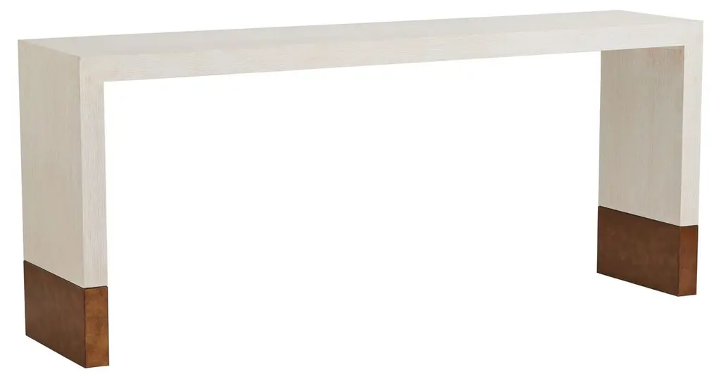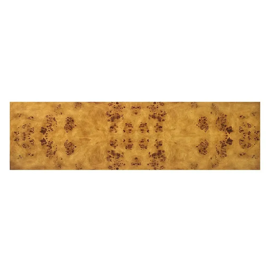 Crafted from premium mappa burl wood veneer, this table features clean, geometric lines that highlight the natural golden tones and intricate grain patterns of the wood. The brass-capped feet add a touch of contemporary elegance, making it a stunning accent piece for any space. Ideal for entryways, living rooms, or behind a sofa, this console table is as functional as it is stylish. Its timeless modern design ensures it complements both classic and contemporary interiors effortlessly. Dimensions: 64" W x 18" D x 32" H