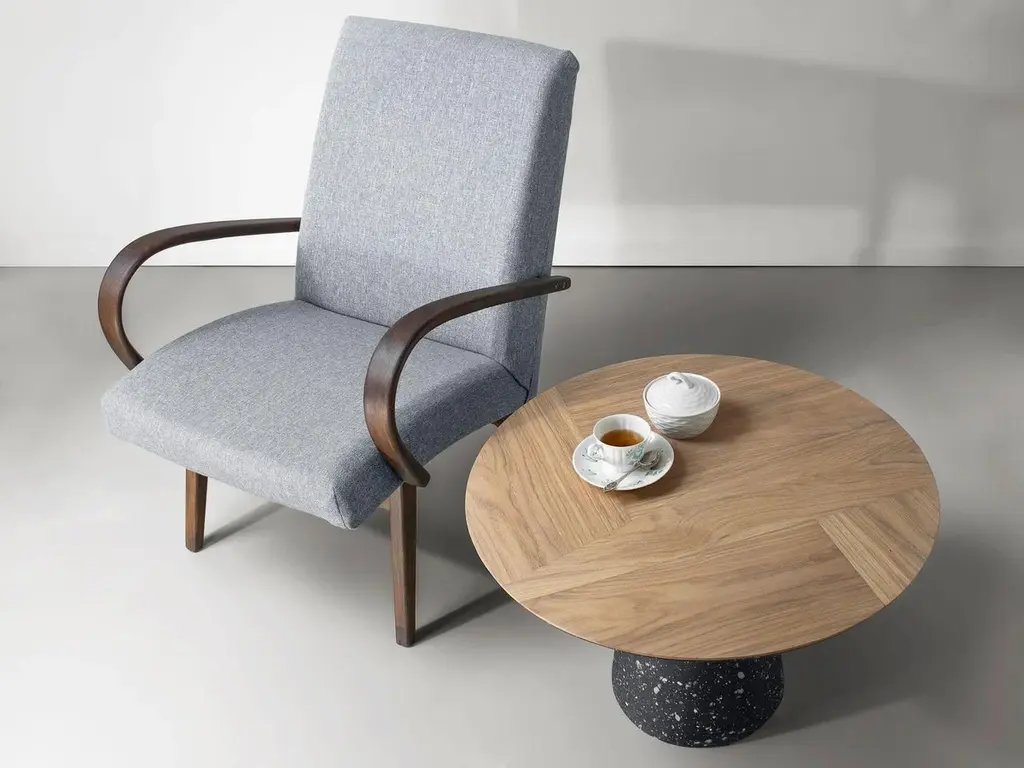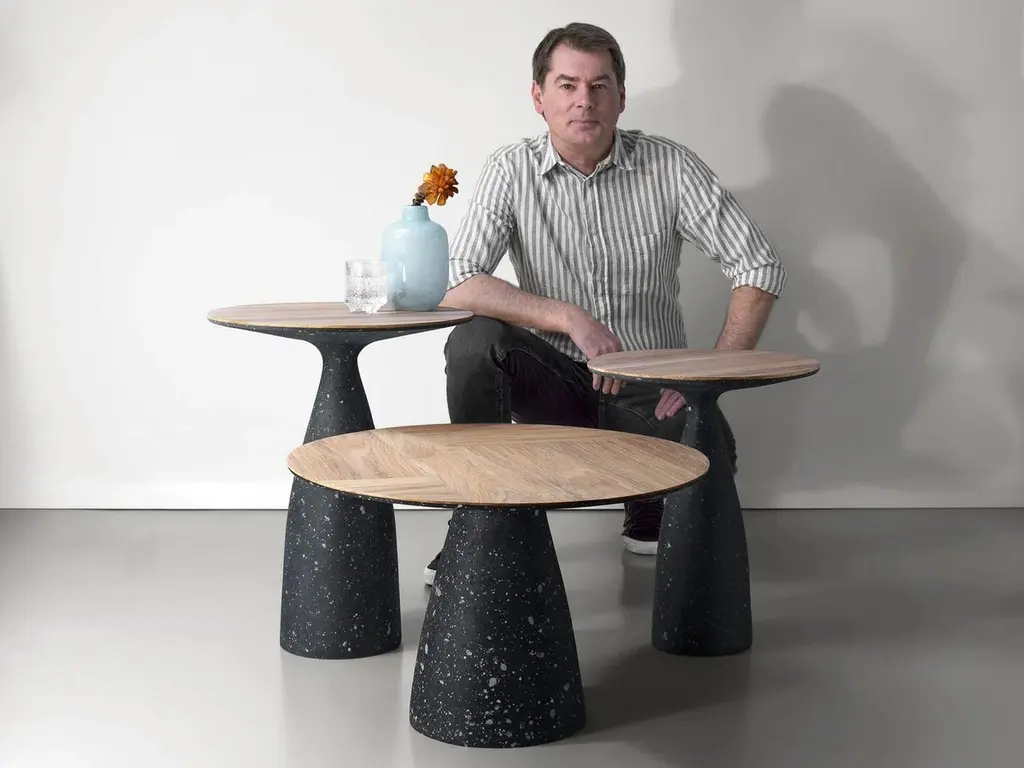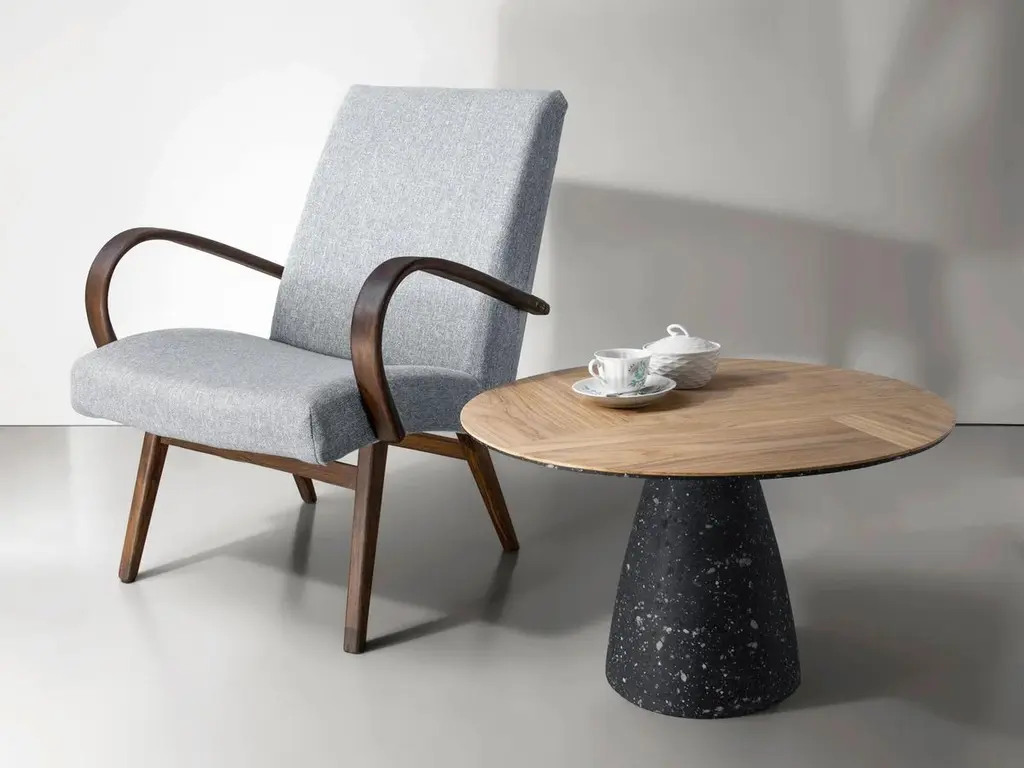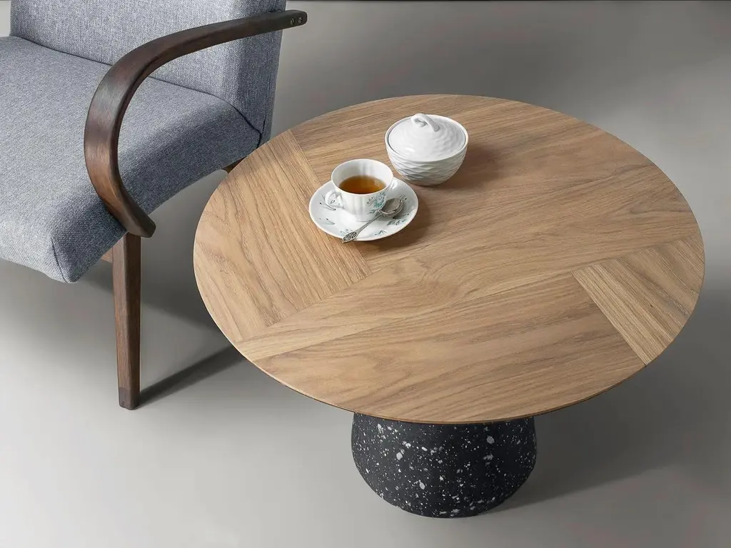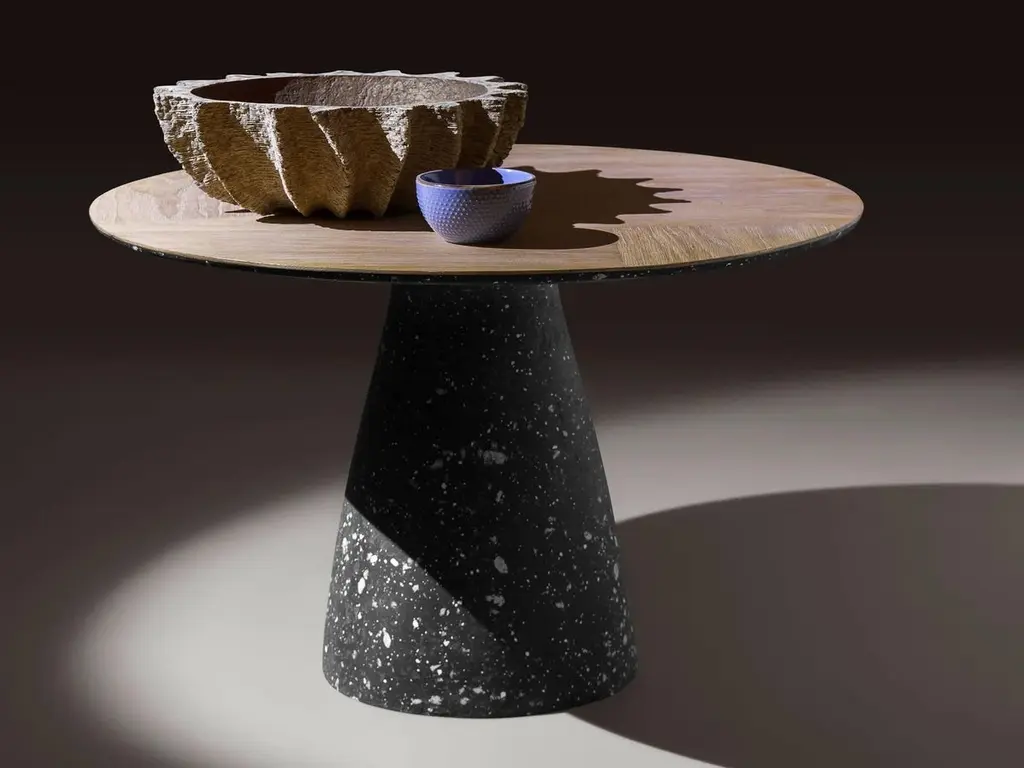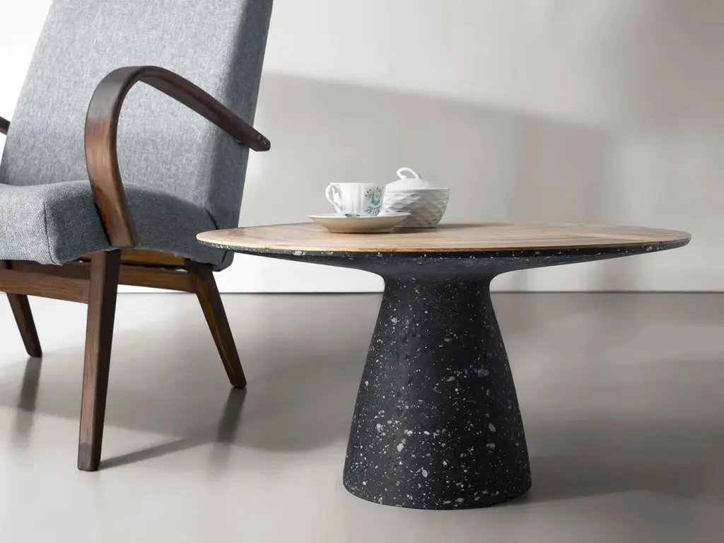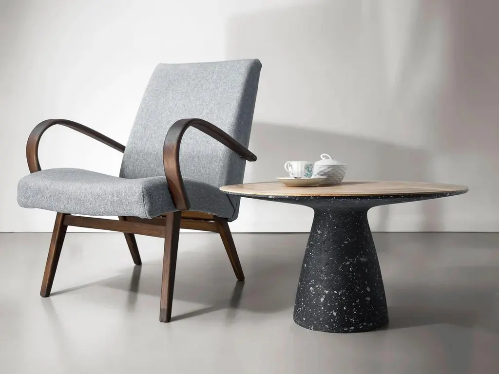 Modern Coffee Table by KasanaiDimensions: D 63 x H 40 cm.Materials: Oak, cement, recycled paper, glue, paint.15 kg.The visual inspiration for the coffee table is a combination of natural wood and concrete. These two opposite materials combined, create a unique character of the product that has the coldness of concrete and the coziness of wood. The main goal of the project was to create not only a piece of furniture, but also a sculptural and elegant detail of the interior.The tabletop is made of natural oak, and the base of the table, resembling concrete in appearance, is made by pouring solid mass. The set task was technologically challenging - it was necessary to fuse wet mass and moisture-sensitive wood. The entire structure of the table is manufactured at the same time, so that the two materials join together smoothly and precisely to avoid any gaps. After the product dries, it is scrubbed, and the tabletop is oiled.The black concrete-like material is the result of various experiments. It is a mixture of several components: an eco-friendly of cement, recycled paper, glue, and paint. Dried it becomes as strong as wood, it resembles concrete but is slightly elastic, so it does not split or crumble.The result is a natural texture and strength that ensures durability, setting it apart as a unique and sustainable piece.Donatas ŽukauskasHello, my name is Donatas Žukauskas, I am an interior designer. I have graduated Vilnius Academy of Fine Arts and for more then 15 years I have been designing the interiors. Since I can remember myself I have always been interested in the art and this is the reason I have always tried to decorate interiors with art works. I strongly believe, a perfect interior cannot be without art!This concept used to get difficulties because could not find necessary objects for interior like stylish tables, lamps, lanterns, vases, sculptures. This gave an idea to create some arts by myself. Exceptional hand-made details for the home, cafe, and hotel spaces provide expressiveness and manners.My works are exposed in different countries of the world. Recently 50 lanterns went to Sheraton’s restaurant at Doha, Qatar.