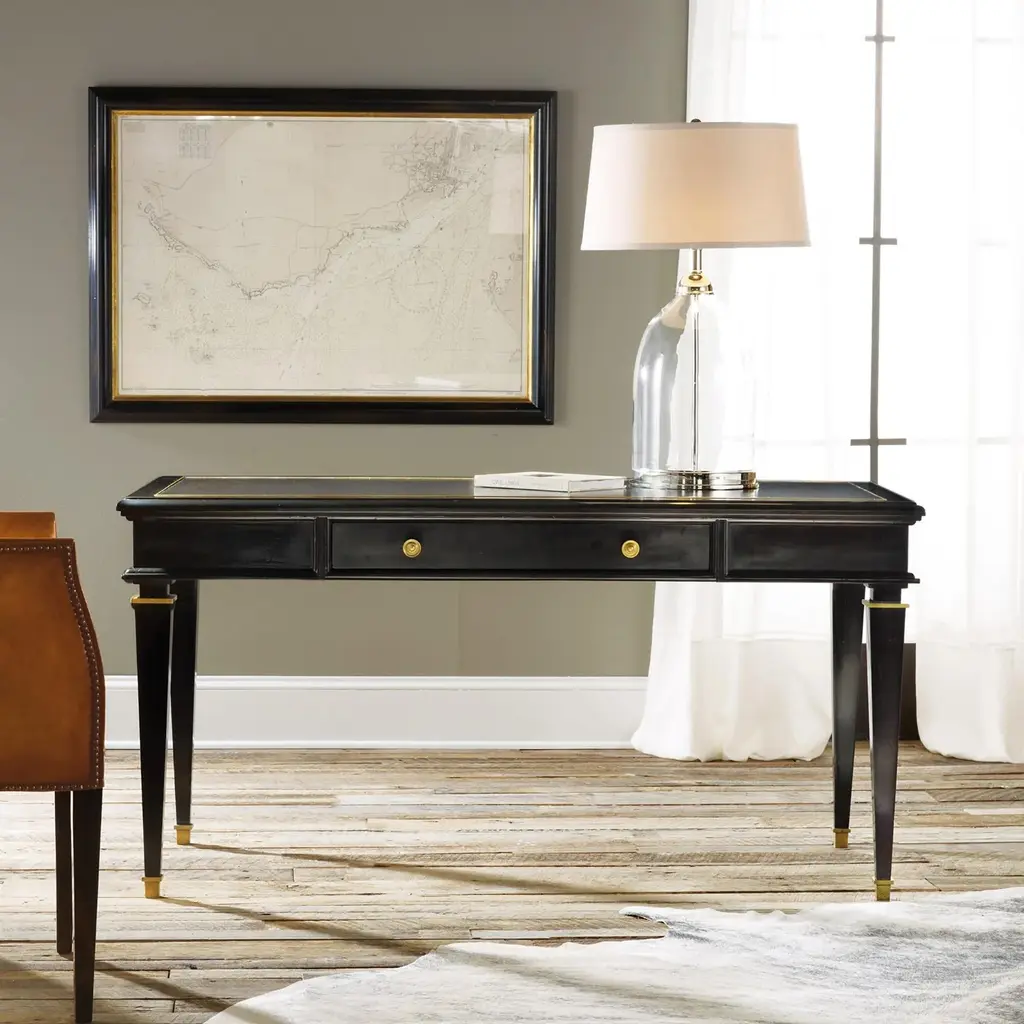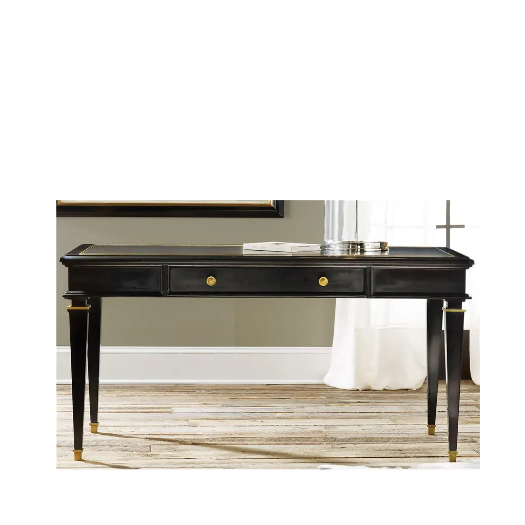 Honoring the craftsmanship and quality of the past, this gorgeous furniture piece is shure to become a modern-day heirloom. Hand-crafted in small quantities, the quality of manufacture, finish, proportion and attention to detail are reminiscent of generations past when anything less would not be tolerated. Solid brass hardware, dovetailed drawers and hand rubbed finishes are just a few of the many benefits of furniture by MODERN HISTORY. Classic, timeless, well-styled and quality is the foundation of exceptional design and the foundation for the furniture of MODERN HISTORY . Built on the ongoing family tradition of Yorkshire House, MODERN HISTORY is a fresh and exciting approach to Fine Furniture and High Design. Features: Leather Inset Top, Solid Brass Details Care Instructions: Warm Soap & Water; Dry Please note: Accessories pictured are not included with purchase