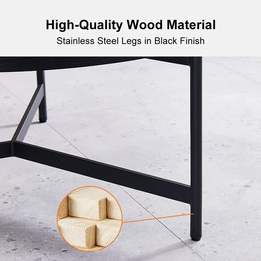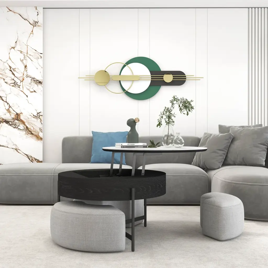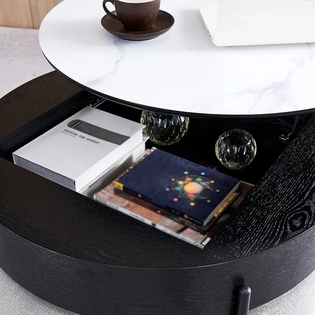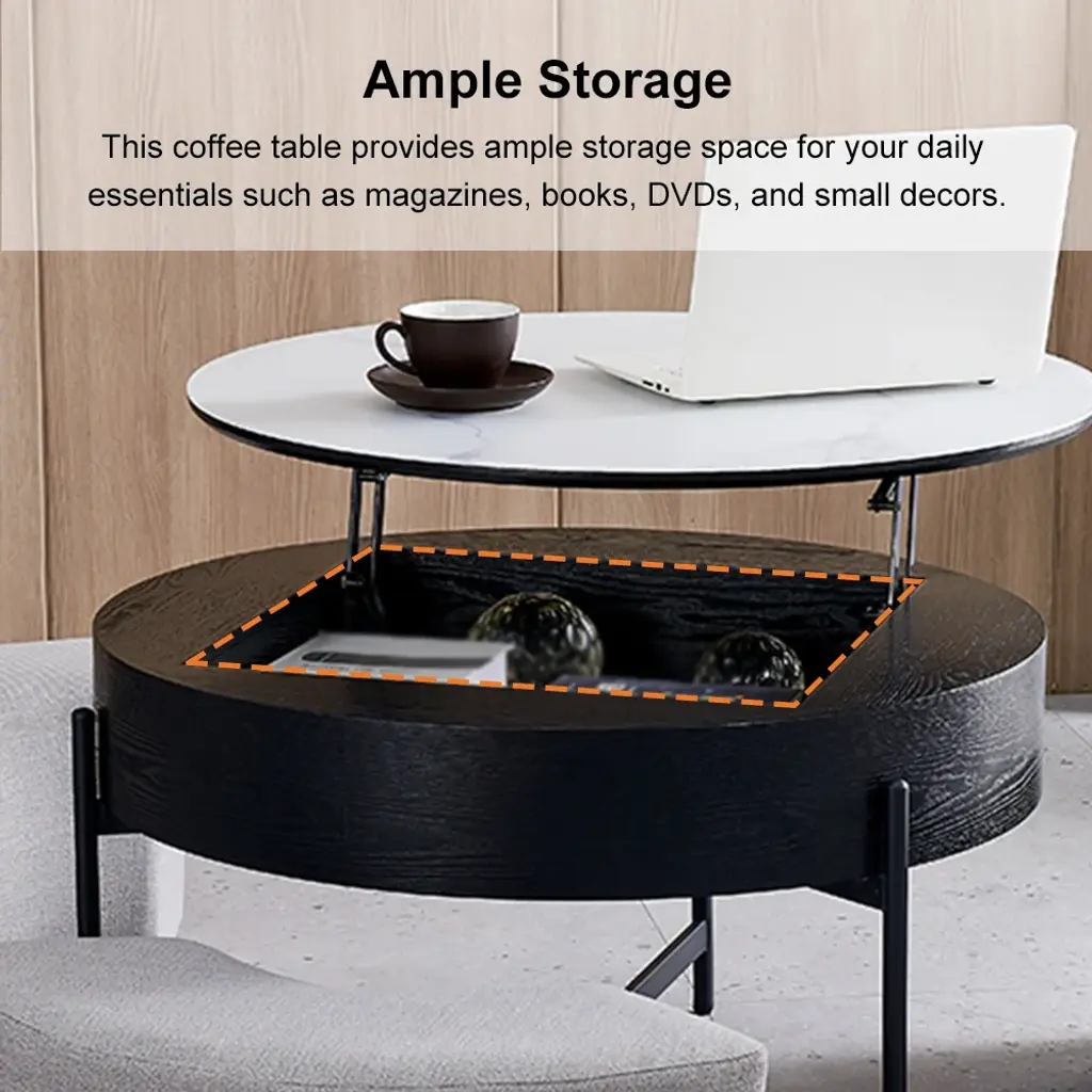 Modern Round Lift-Top Coffee Table With Storage & 3 Ottoman White & Black