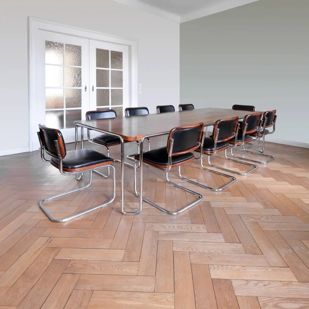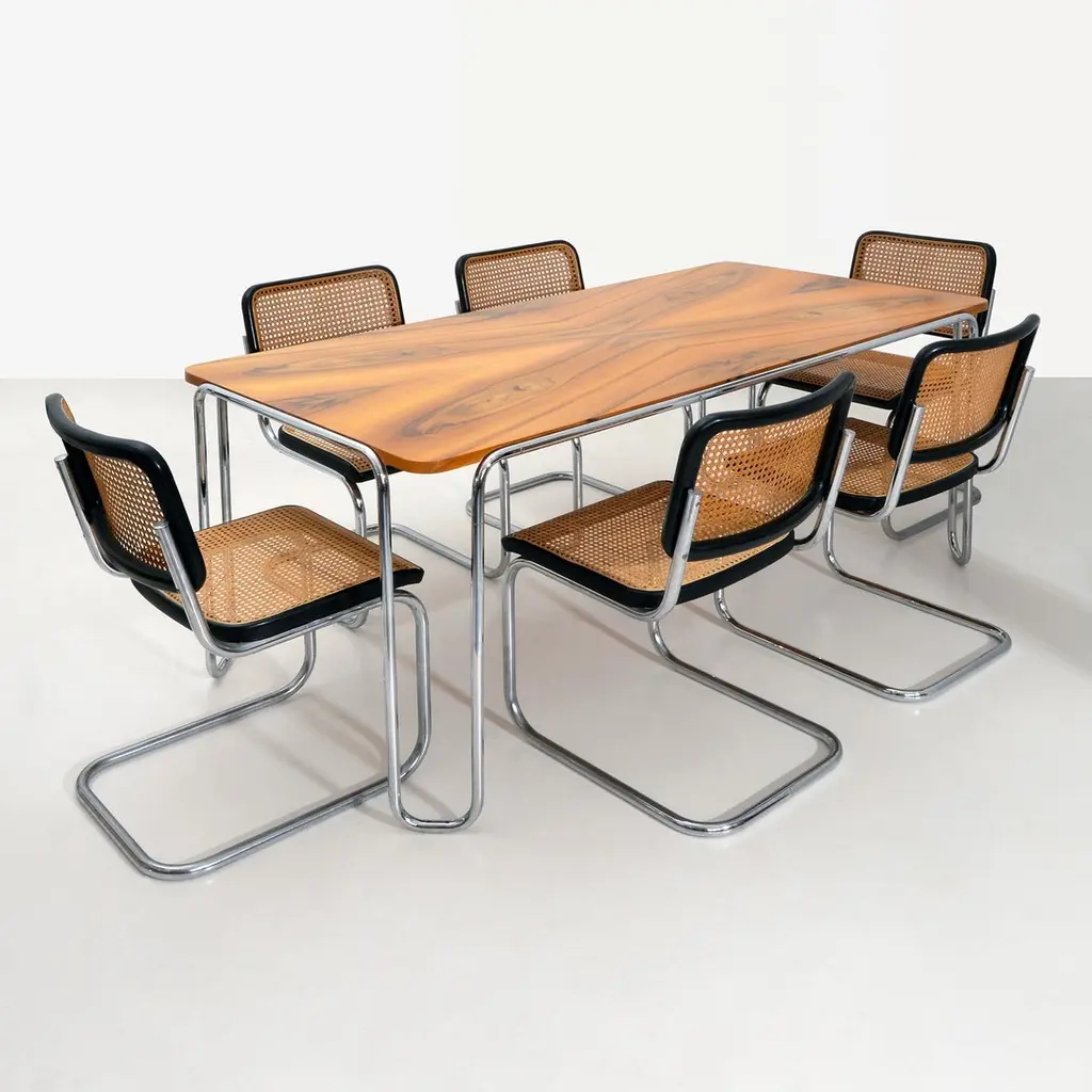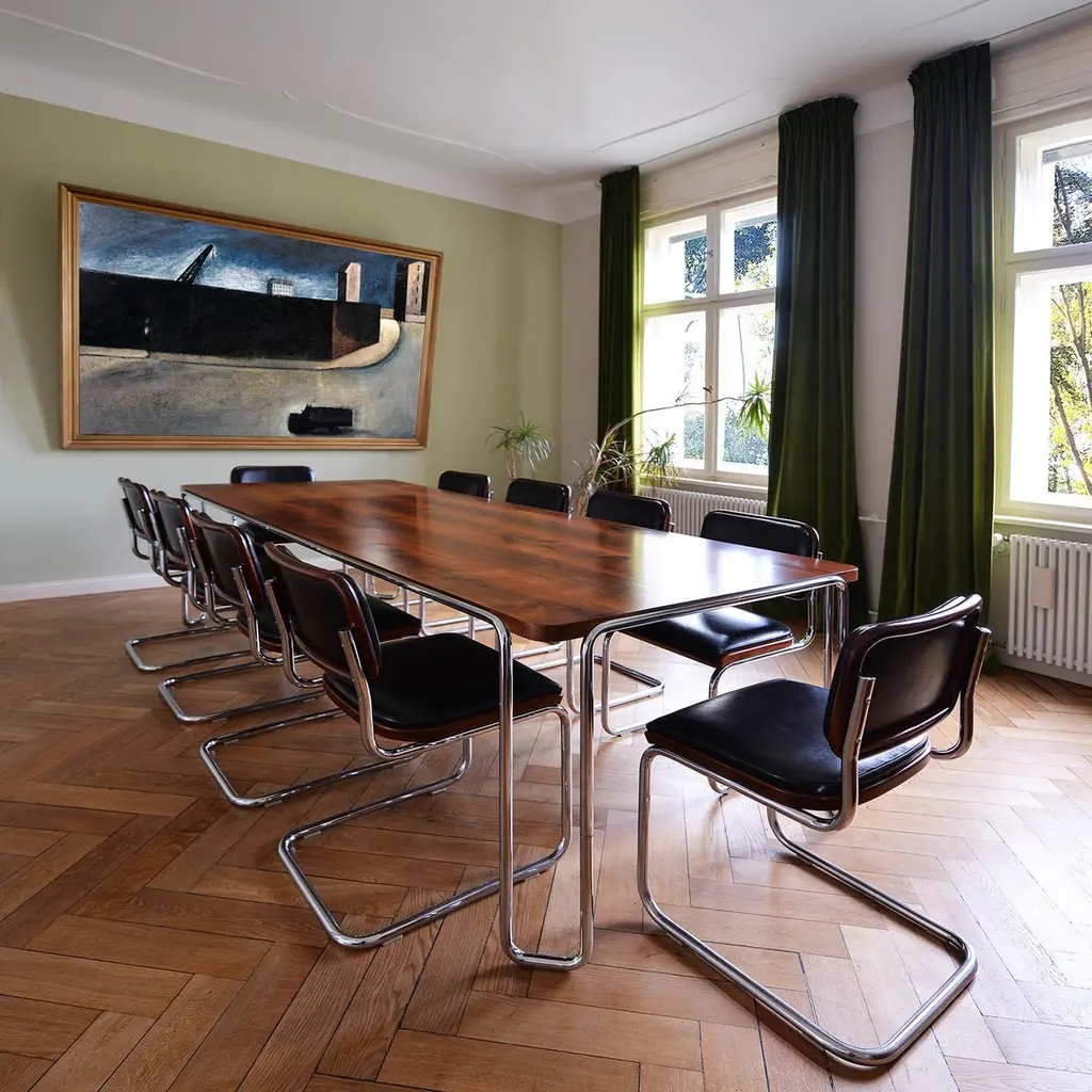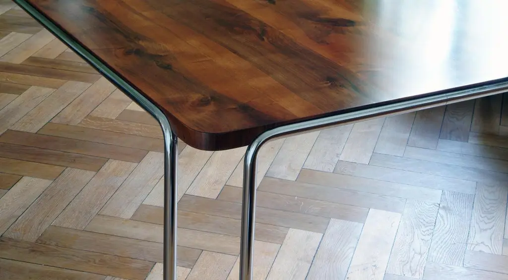 Modernist ultra-thin tubular-steel table designed and manufactured by GMD Berlin. Delivery time: 6-8 weeks.