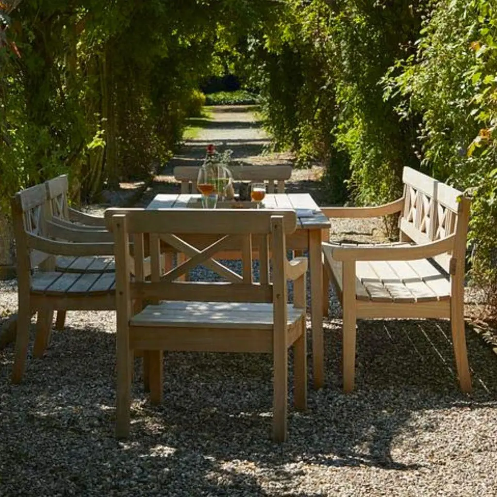 Mogens Holmriis outdoor 'Drachmann 156' teak table for SkagerakSkagerak was founded in 1976 by Jesper and Vibeke Panduro, who took inspiration from their love of Scandinavian design and its rich tradition. The brand emphasizes sustainability by using responsibly sourced materials and production methods that minimize waste and reduce environmental impact. Each piece of handcrafted furniture is designed to age with grace and last for generations.Launched in 1982, the Drachmann table and chair series was inspired by the Danish poet and painter Holger Drachmann. The design strikes a timeless balance between Nordic nostalgia and modern simplicity. Durable in all kinds of weather, the table ages with grace, taking on a silver-grey patina. Available in 4 sizes and executed in FSC-certified teak to the exacting standards of SkagerakPrice per item. Available to order in unlimited quantities and in 4 sizes - please see our separate listings. This listing is for the 'Drachmann 156' table in teak.In stock lead time 2-3 weeks. Out of stock lead time can be an additional 3-4 weeks, or longer. Lead times and stock availability are subject to change at any time and without notice. Please inquire for current lead times prior to placing time sensitive orders.Made to order.All sales final.